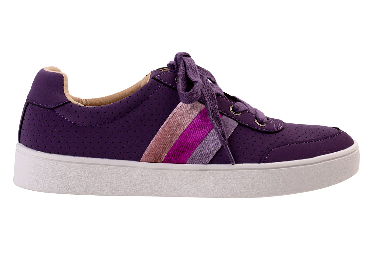 Elevate your classic sneaker style this season with the Belmont Stripe. Featuring luxurious velvet trim alongside an easy-to-wear color palette, this sneaker offers a blend of sophistication and comfort. Enjoy a customized, secure fit with classic lacing, and experience exceptional all-day comfort with a foam-padded tongue and collar. Step into the Belmont Stripe and enjoy lasting orthotic support with Revitalign® Footwear and our Full Contact Comfort® footbed.