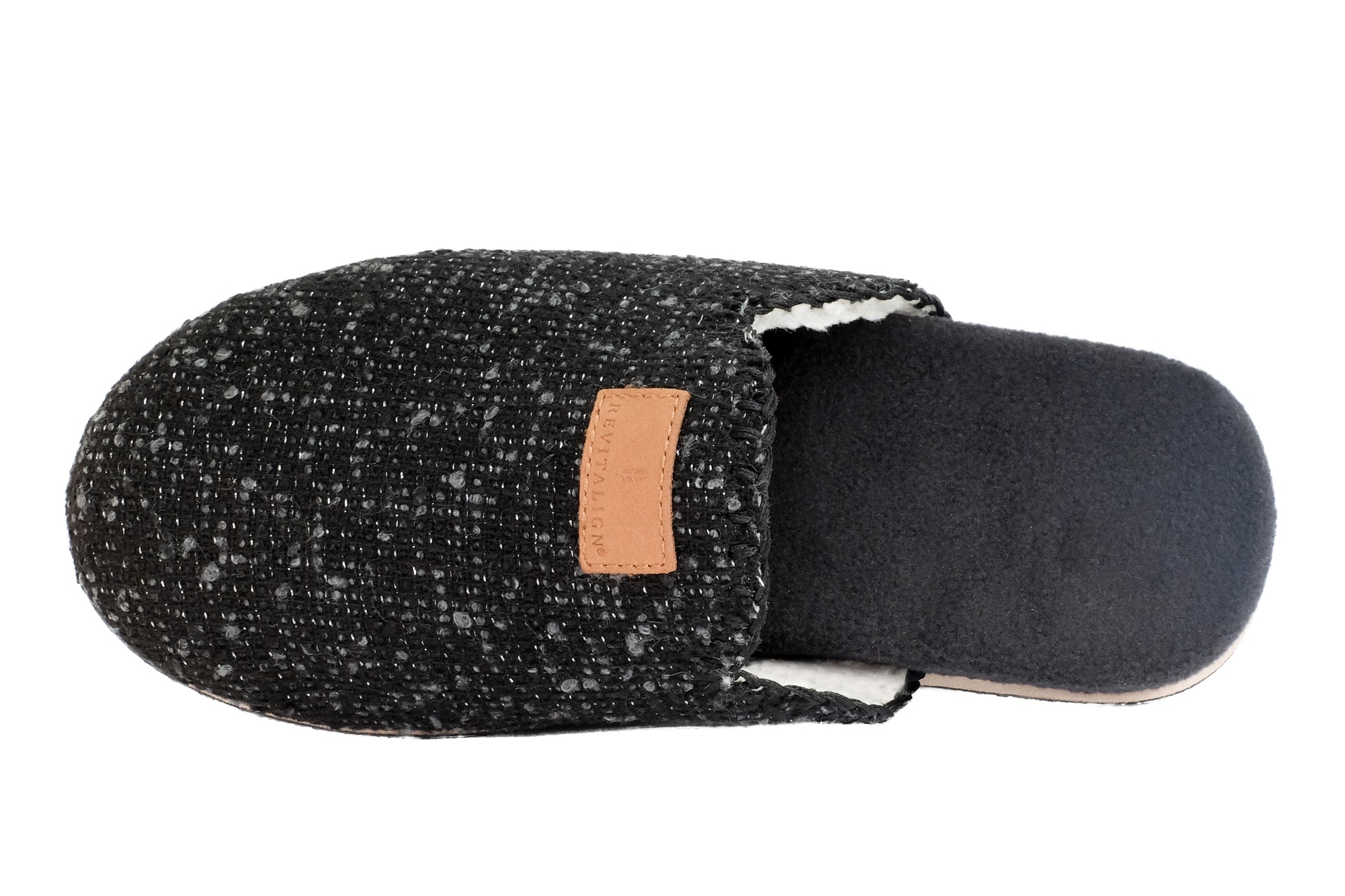 I am Very Happy with this Alder Knit Slipper. Very Good feel right out of the box. I was a little worried how the foot bed would feel, as I have flat feet with a high instep, but these work for me. They call them a slipper, but I will be wearing these out & about with jeans, long skirt, and especially with all my sweater pants & cashmere this winter. My feet will be Happy And I will be Stylin ! I got these in both the black and the Oatmeal colors. Beautiful materials and the big plus is the cozy warm inside lining all the way to the toes. I am new to the Revitalign brand, but am sold on the way they take care of our feet while offering us great design & materials.