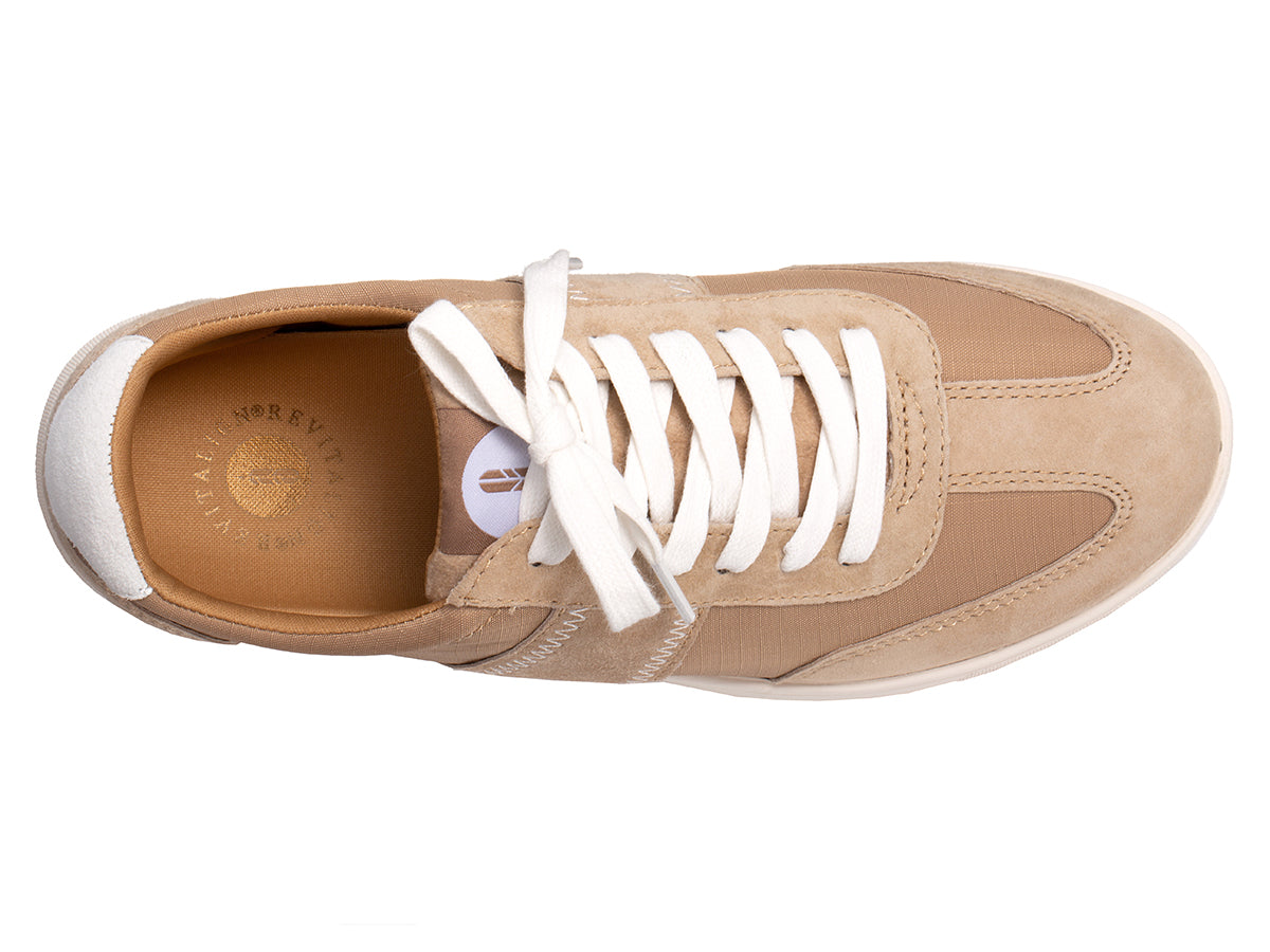 Step into style and comfort with the Farrah Sneaker, an easy-to-wear design featuring a fashion-forward ripstop upper trimmed with color-blocking low-knap suede. Customize your perfect fit with traditional laces and elevate your look this season. Experience the unmatched orthotic comfort and support of Revitalign® Footwear and our Full Contact Comfort® footbed, featuring a metatarsal dome, deep heel cup, forefoot cushioning, and anatomically designed arch support.