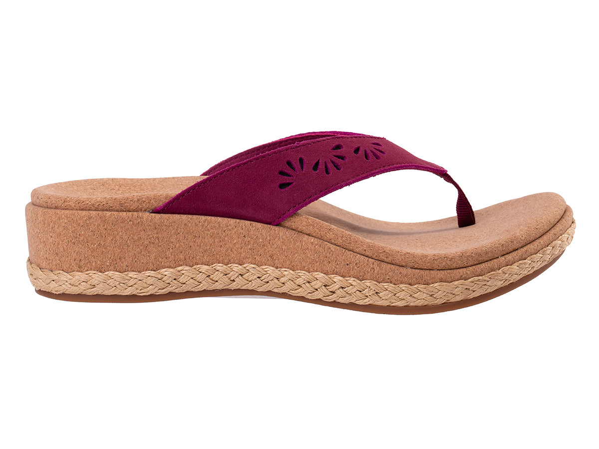 Elevate your style with the Kate Wedge, designed for all-day sophistication and comfort. Featuring an easy-to-wear toe-post that's gentle between the toes, beautiful full-grain leather straps with delicate laser perforations, a quick-dry lining, and a natural cork-wrapped wedge for reliable grip, the Kate Wedge seamlessly blends function and fashion. Make a statement this season with effortless flair, knowing you're supported by Revitalign® Footwear and our Full Contact Comfort® footbed, featuring a metatarsal dome, deep heel cup, forefoot cushioning, and anatomically designed arch support, for unmatched orthotic support.