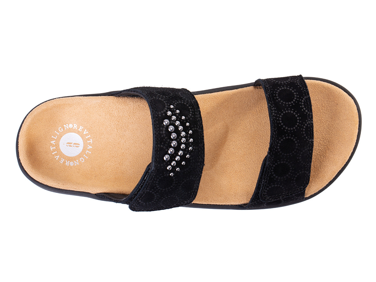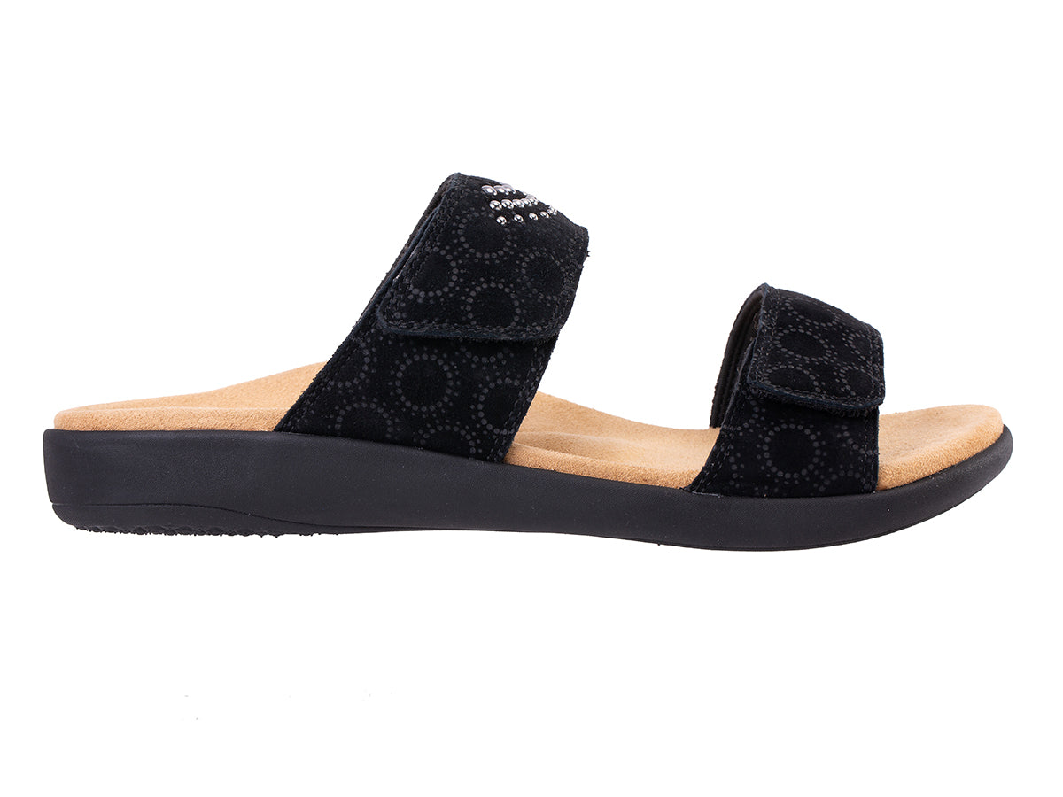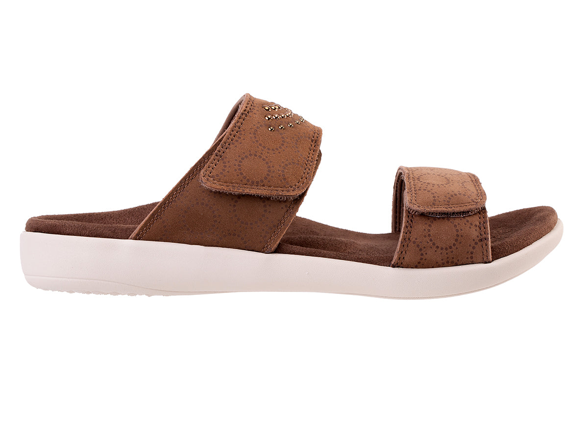 Where sophistication and elegance merge beautifully. Mirage Slide, featuring Full Contact Comfort® by Revitalign® adds exceptional all-day comfort and support to your style. Constructed of genuine low-knapp soft suede, artfully trimmed and lined with quick-dry materials. With 2-points of adjustability and memory foam technology underfoot, the Mirage is ready to move as you do throughout the day.