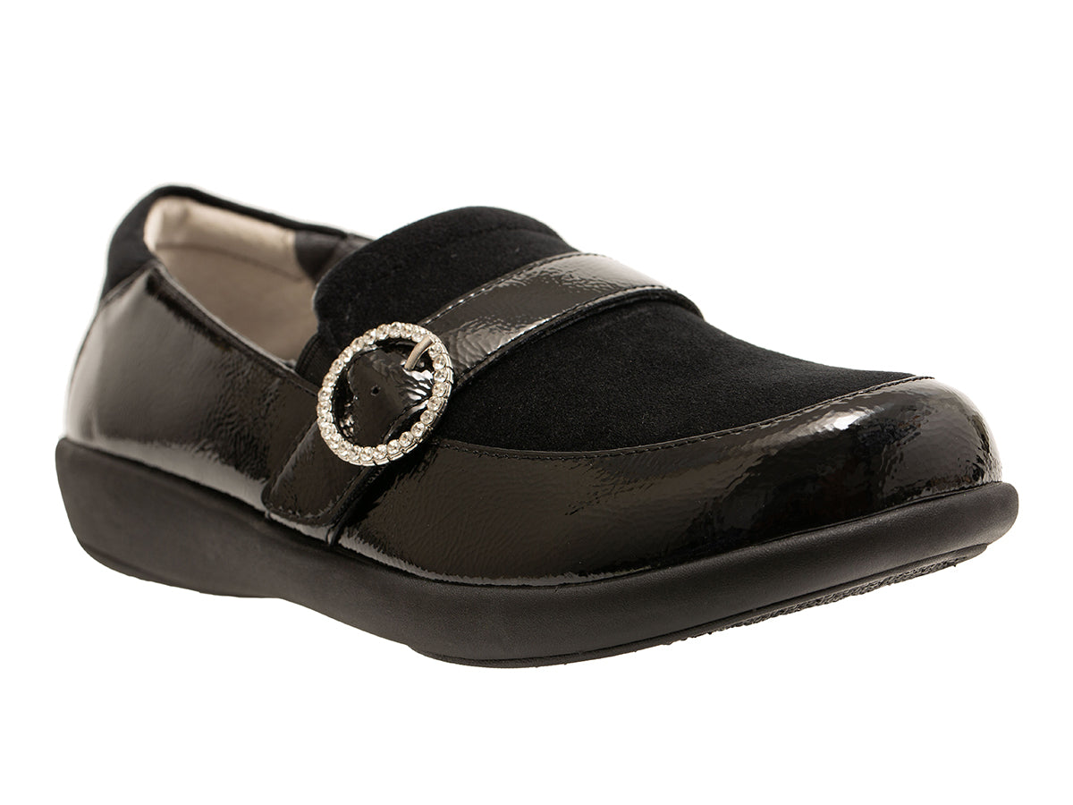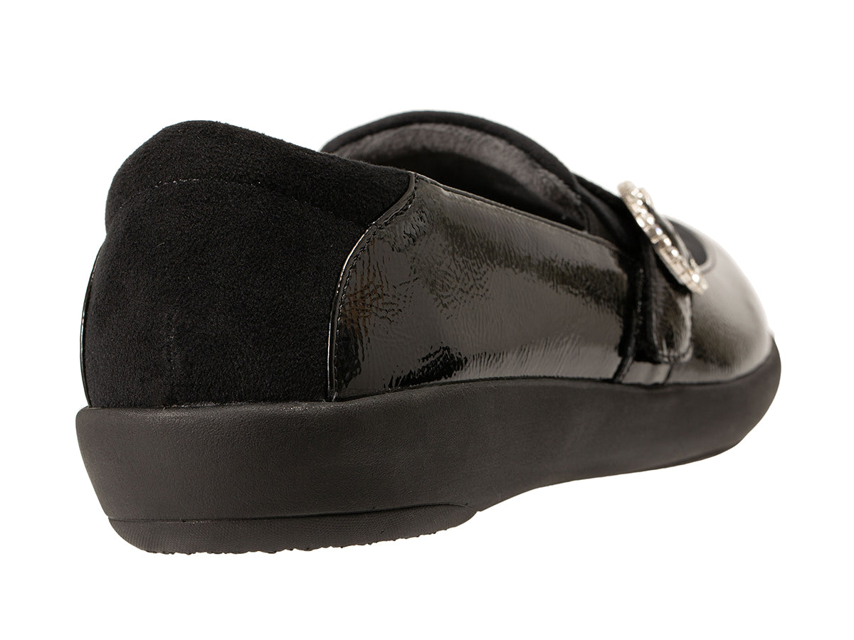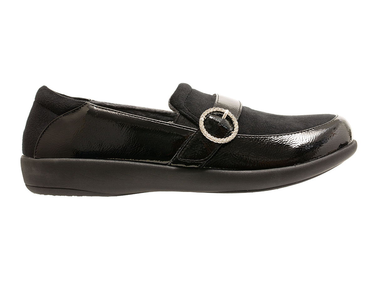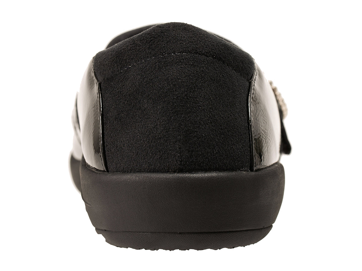 Curated for exceptional comfort and seasonal style, the Siesta Majestic blends rich, deep hues of luxe velvet and a patent finish. Featuring glamorous diamond crystal adjustability and a touch of stretch gore for a perfect fit, this design ensures all-day ease. Powered by Revitalign® Footwear, it delivers unmatched orthotic support and lasting comfort for years to come.