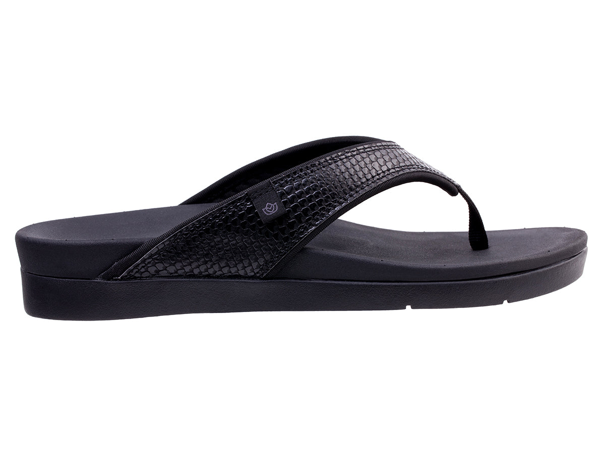 East or west, a shoreline never disappoints and with neither function nor fashion taking the back seat, the Shoreline Snake is no exception. Combining textured beach-friendly synthetic leather, a webbing toe-post, quick-dry linings, and an unlined footbed, make a statement this season by adding effortless flare to your attire. Our Full Contact Comfort® footbed provides an unmatched level of comfort and support.