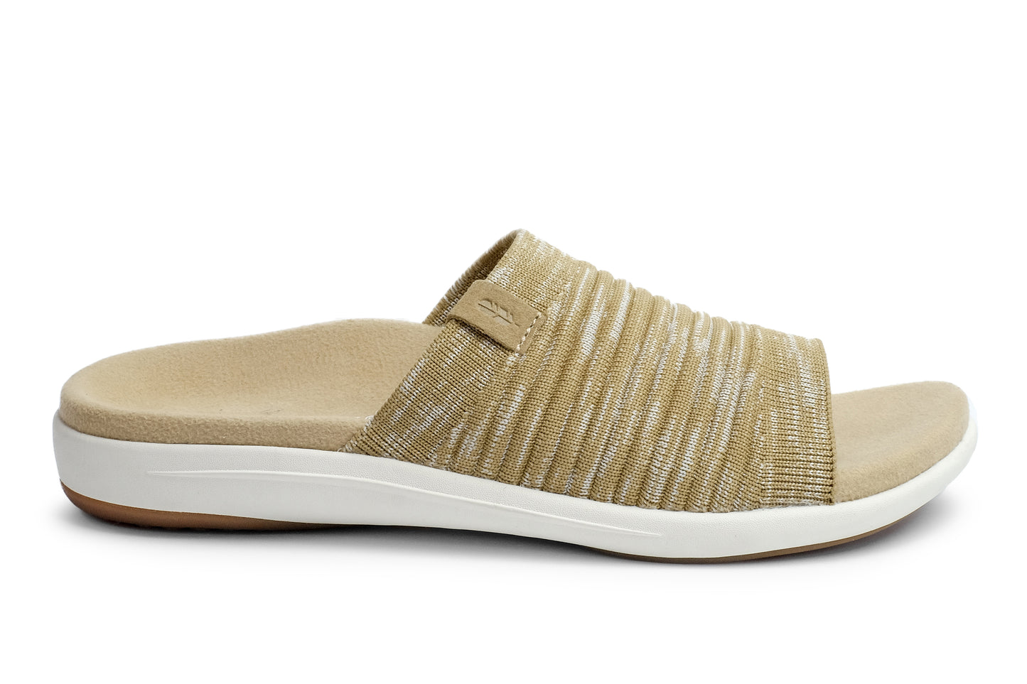 Meeeee123 I have a number of small foot tissues, and can no longer wear a thong sandal. I do have issues with slides because they are usually loose, and I tend to walk out of them. These sandals are great because they are woven and snug, but not too tight. They are wonderful for walking in the summer and pretty to wear to dinner on vacation.