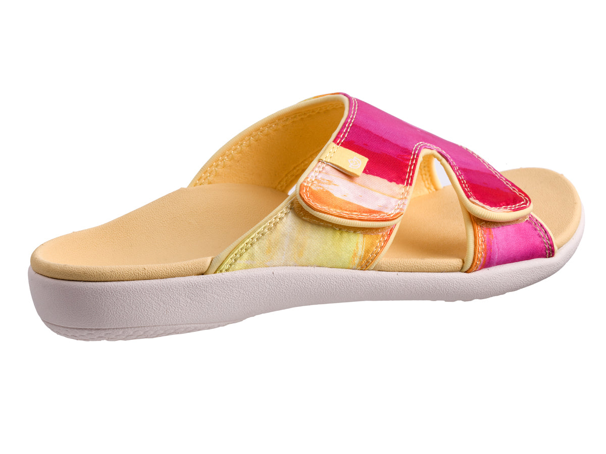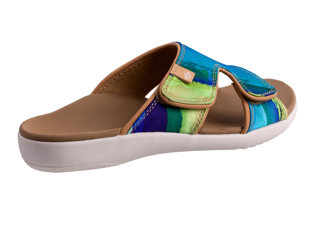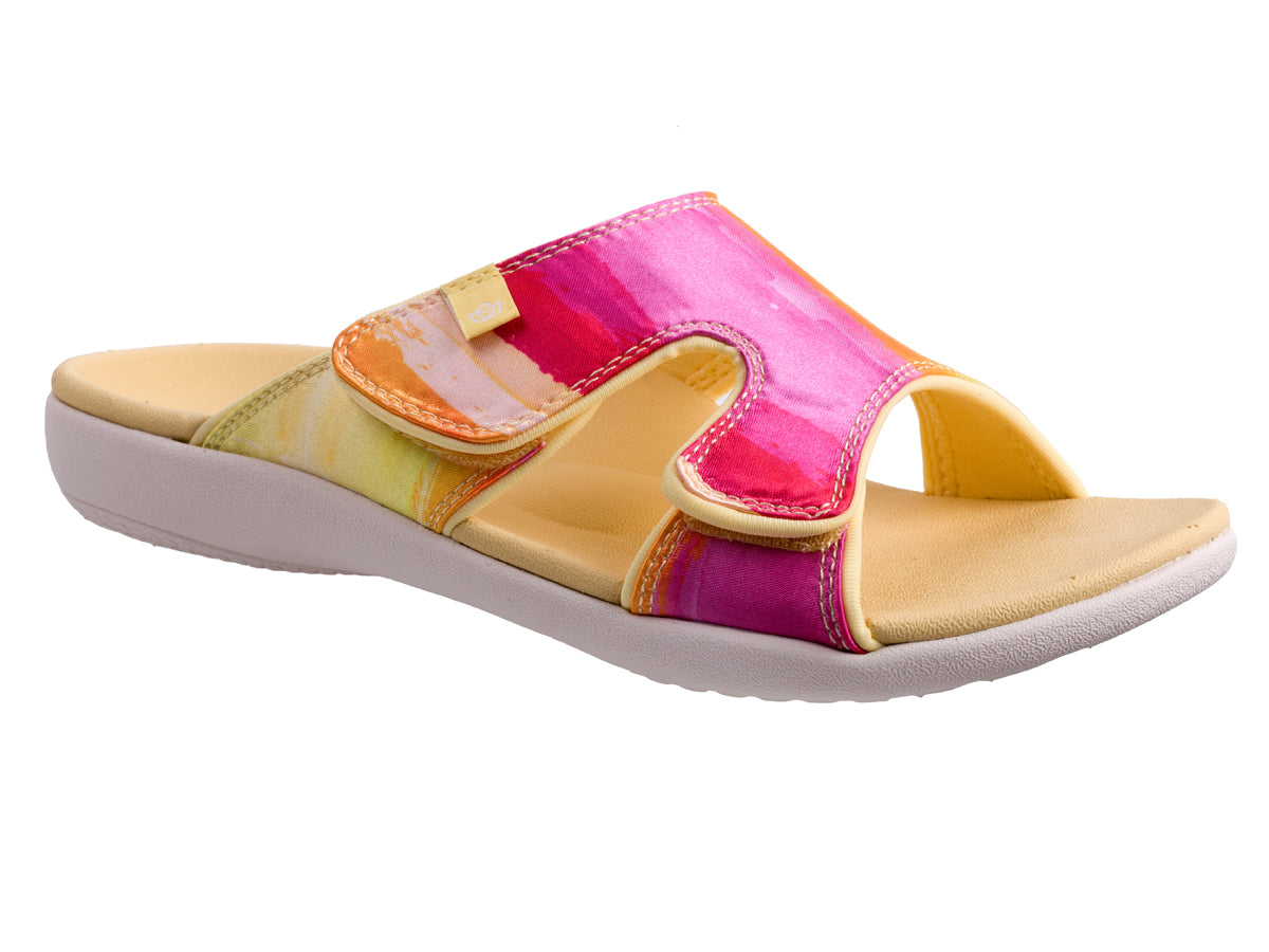 Laurie Davidson I love these slides. The colors are so beautiful & vibrant. The fit is the typical Spenco perfection. By far my favorite orthotic shoe brand! I love that they are lightweight, a blessing to my knees. And the firm but flexible sole can’t be beat. I have over 100 pairs of Spenco and revitalign shoes that I love but this particular sandal, Ive worn so much that it’s almost time to get another identical pair. Definitely, my favorite pair!!!