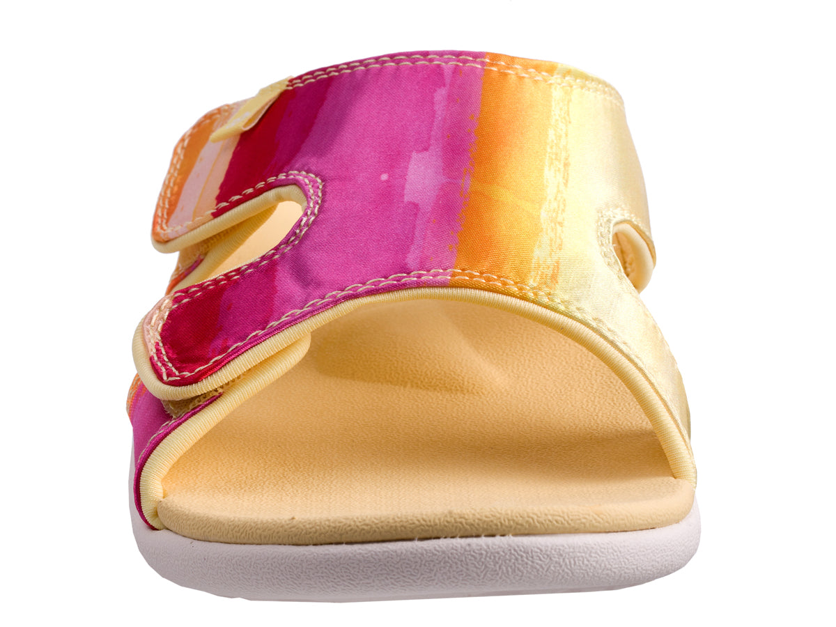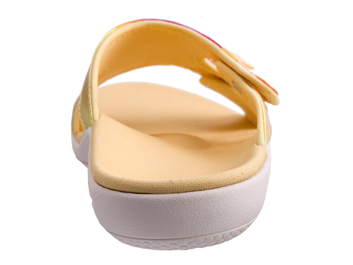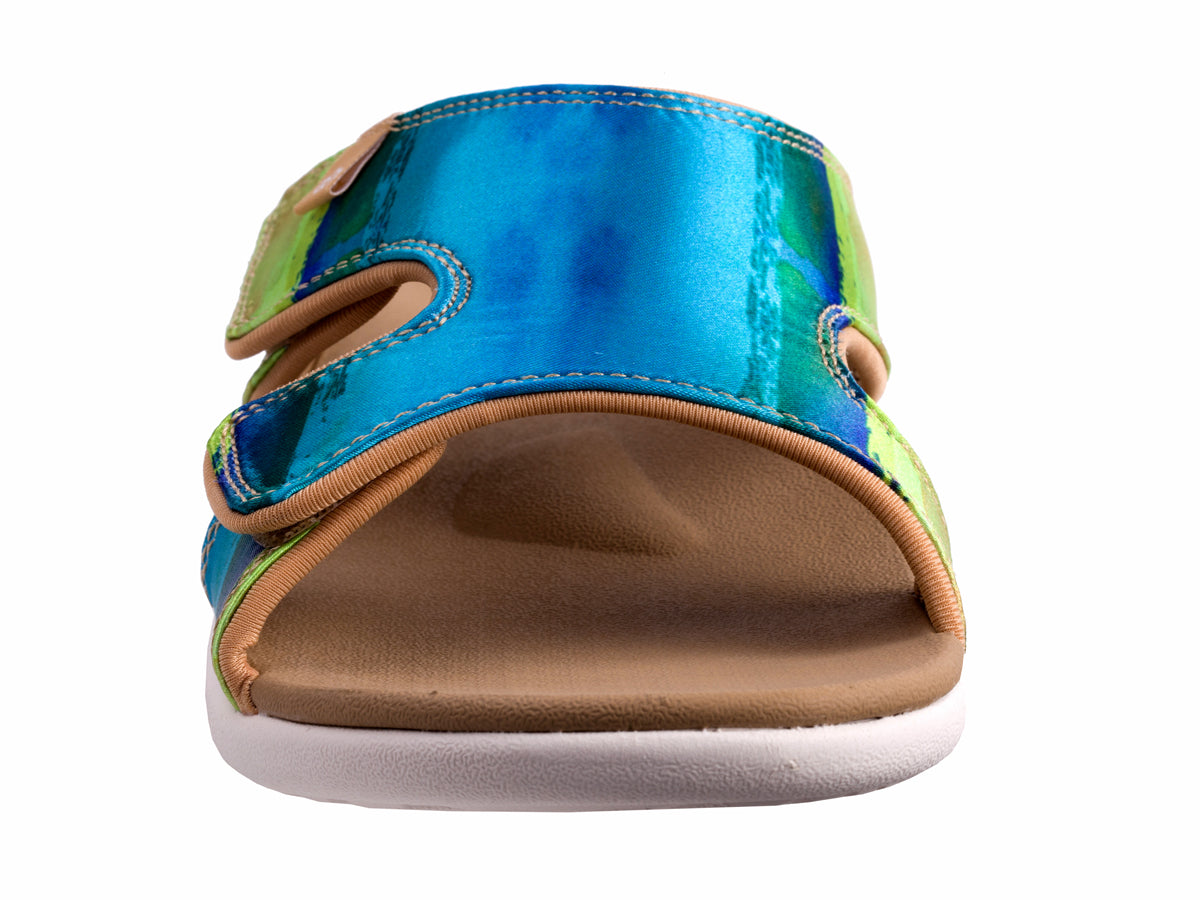 Laurie Davidson I love these slides. The colors are so beautiful & vibrant. The fit is the typical Spenco perfection. By far my favorite orthotic shoe brand! I love that they are lightweight, a blessing to my knees. And the firm but flexible sole can’t be beat. I have over 100 pairs of Spenco and revitalign shoes that I love but this particular sandal, Ive worn so much that it’s almost time to get another identical pair. Definitely, my favorite pair!!!