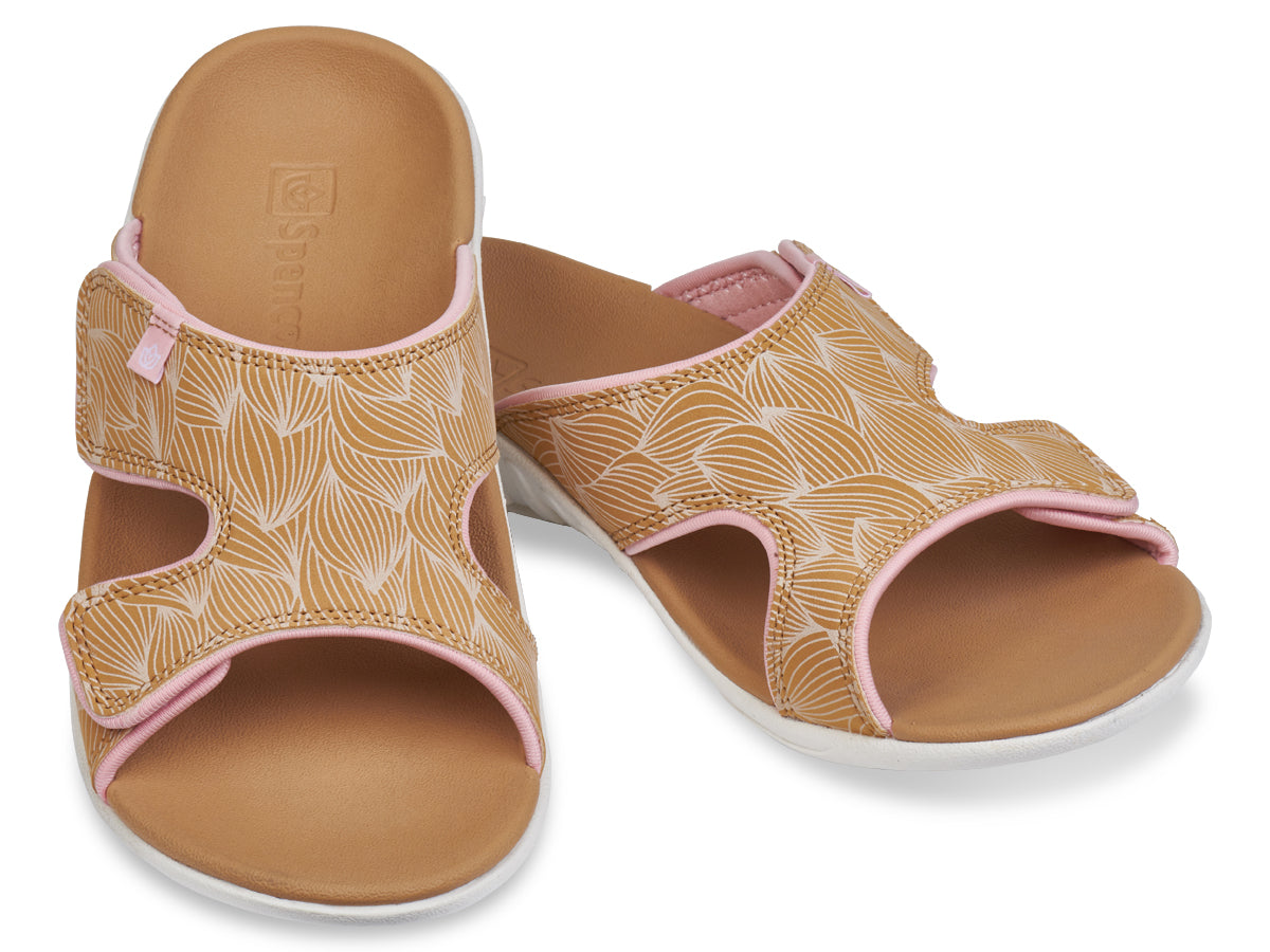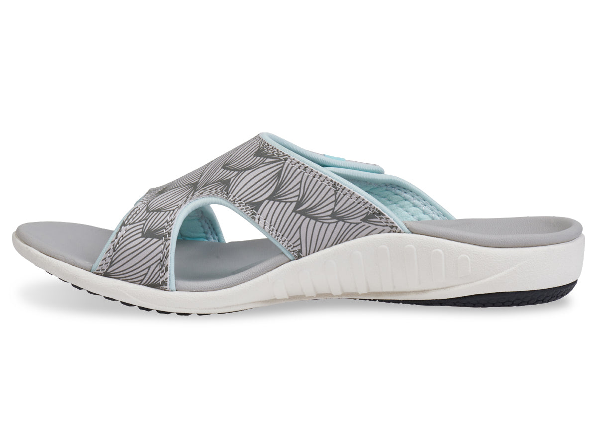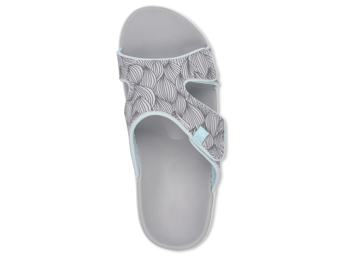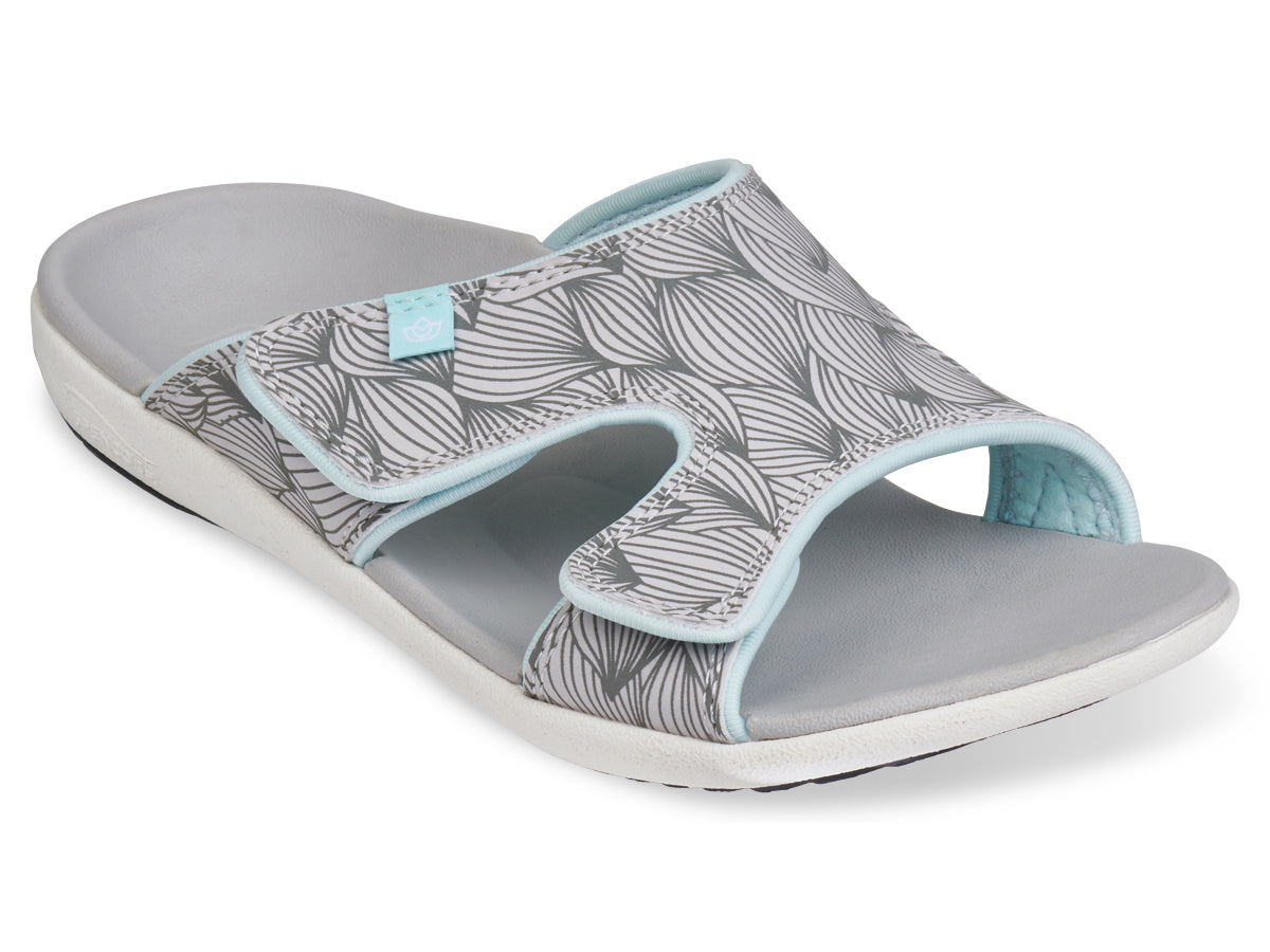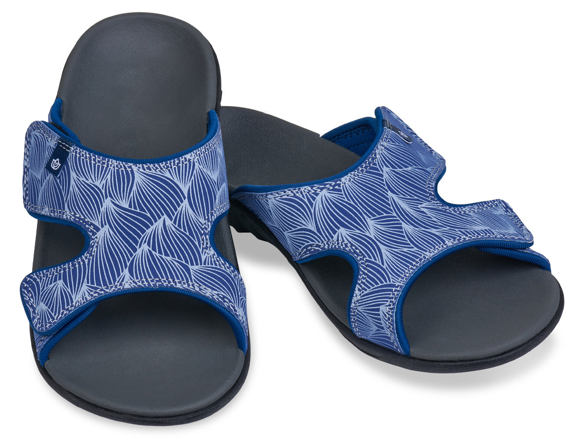 Happiness comes in the WAVE Slide. This adjustable slide takes the Kholo style to the next level with a hook and loop adjustment strap over the instep of your foot. The wave pattern graphic helps to get those summer vibes flowing and the increased adjustability is second to none. A contoured footbed and metatarsal support provide an unmatched level of comfort and support.
