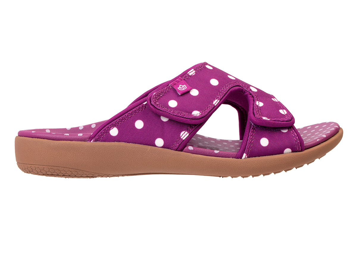 Polka dots, yes, please! Never be too old to love the simplicity of dots or the fully adjustable Kholo Polka Dot slide. Pick a color and have fun knowing our Full Contact Comfort® footbed shares an unmatched level of comfort and support.