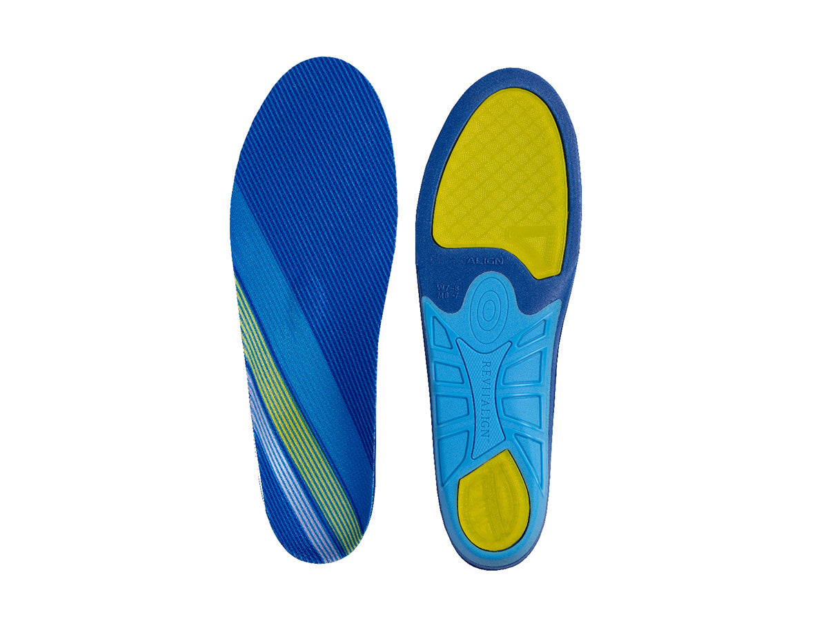Crafted for both amateur enthusiasts and professional athletes, the Revitalign® full-length replacement insole redefines sports-specific insoles with its advanced features. The anti-friction top cloth reduces the risk of blisters, while the 360-degree heel cup offers superior impact protection. Featuring FLEXALIGN™ material for exceptional shock absorption and strategically placed gel for maximum cushioning, it ensures optimal support and alignment. PWR-BRIDGE™ technology stabilizes the heel and mid-foot, enhancing balance and precision on the court.