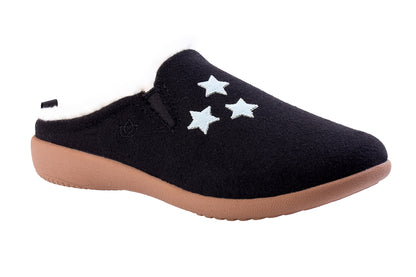 Be happy, dream big and always choose love, our Evie Slipper sets the bar high in both comfort and support and encourages you to reach for the stars. Relax those tired feet in style with decorative felt trim, faux shearling for year-round warmth, and our twin gore panels to provide just the right amount of stretch for when you need it most. Step into luxury and onto our Full Contact Comfort® footbed which provides an unmatched level of support.