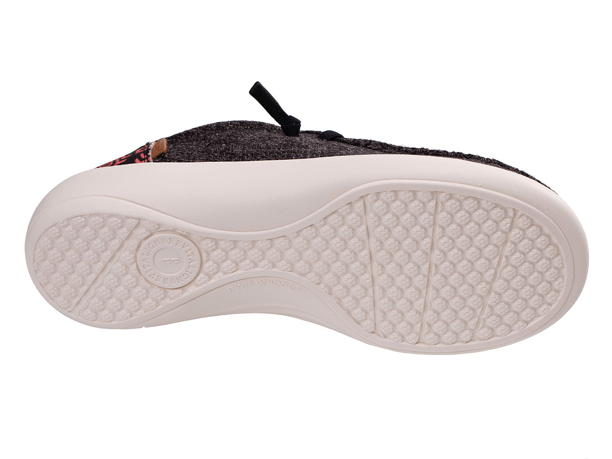 Embrace effortless comfort and bohemian flair with the Carefree Bohemian slip-on by Revitalign®. Designed for easy, slip-on-and-go wear, this shoe features stretch laces with soft silicone lace-ends, a high-textured textile upper with a bohemian printed heel detail, and a natural cork-covered memory foam footbed. Experience unmatched orthotic comfort and all-day support with Revitalign® Footwear and Full Contact Comfort®.