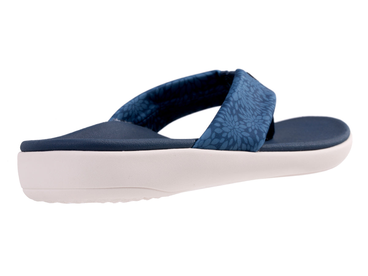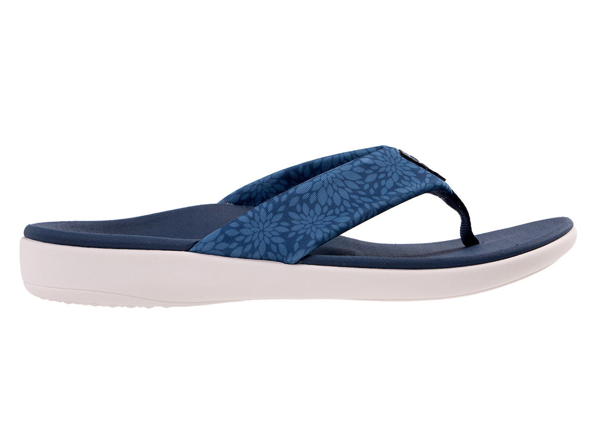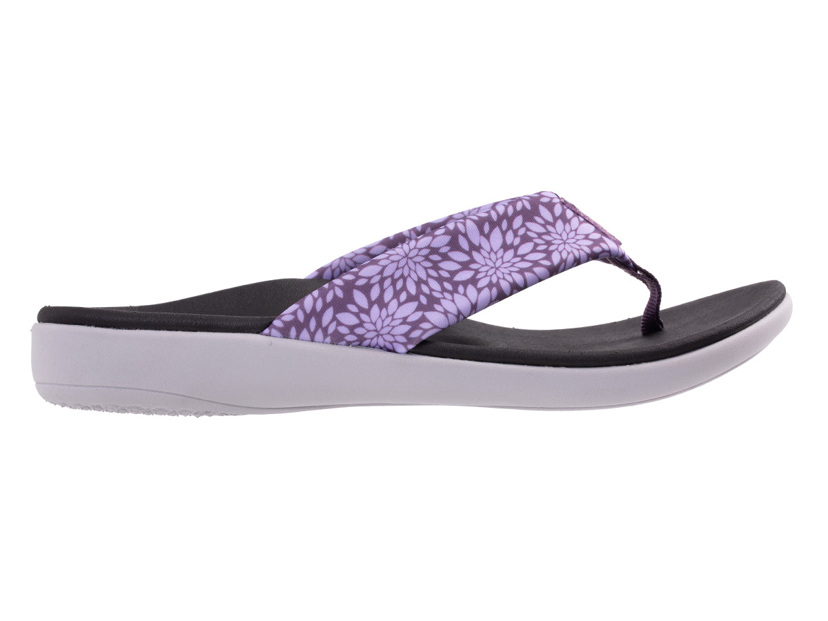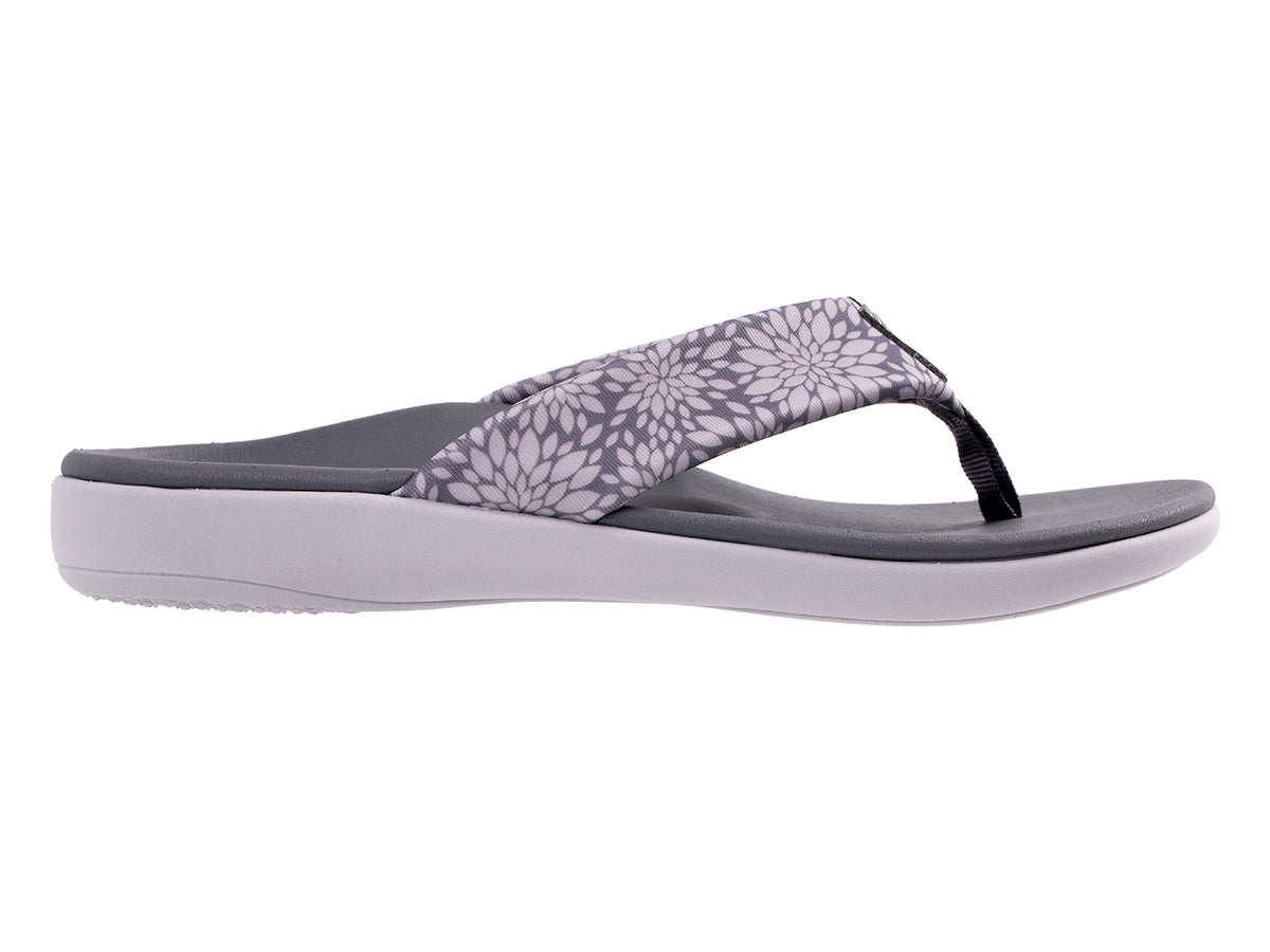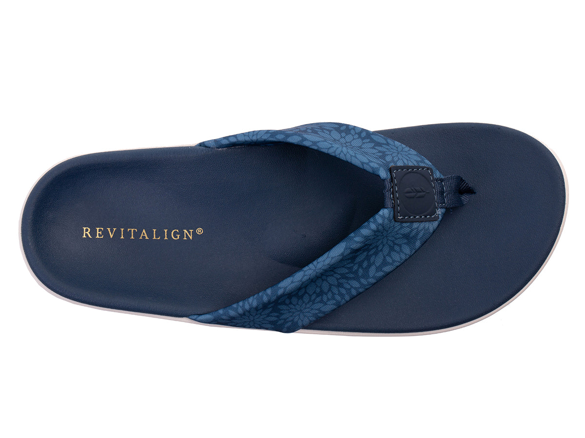 Stroll along the seaboard in style with the Dahlia, our elevated flip-flop sandal. Featuring a one-piece upper construction with a subtle monochromatic print, a molded EVA footbed, and a design engineered for exceptional foot comfort, the Dahlia is your perfect beachside companion. Experience the unmatched comfort and orthotic support of the Revitalign® Full Contact Comfort® footbed, featuring a metatarsal dome, deep heel cup, forefoot cushioning, and anatomically designed arch support.