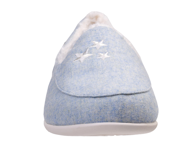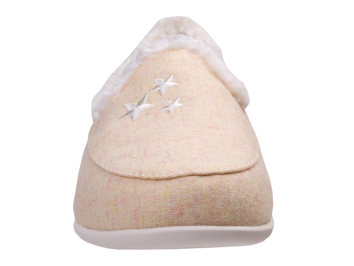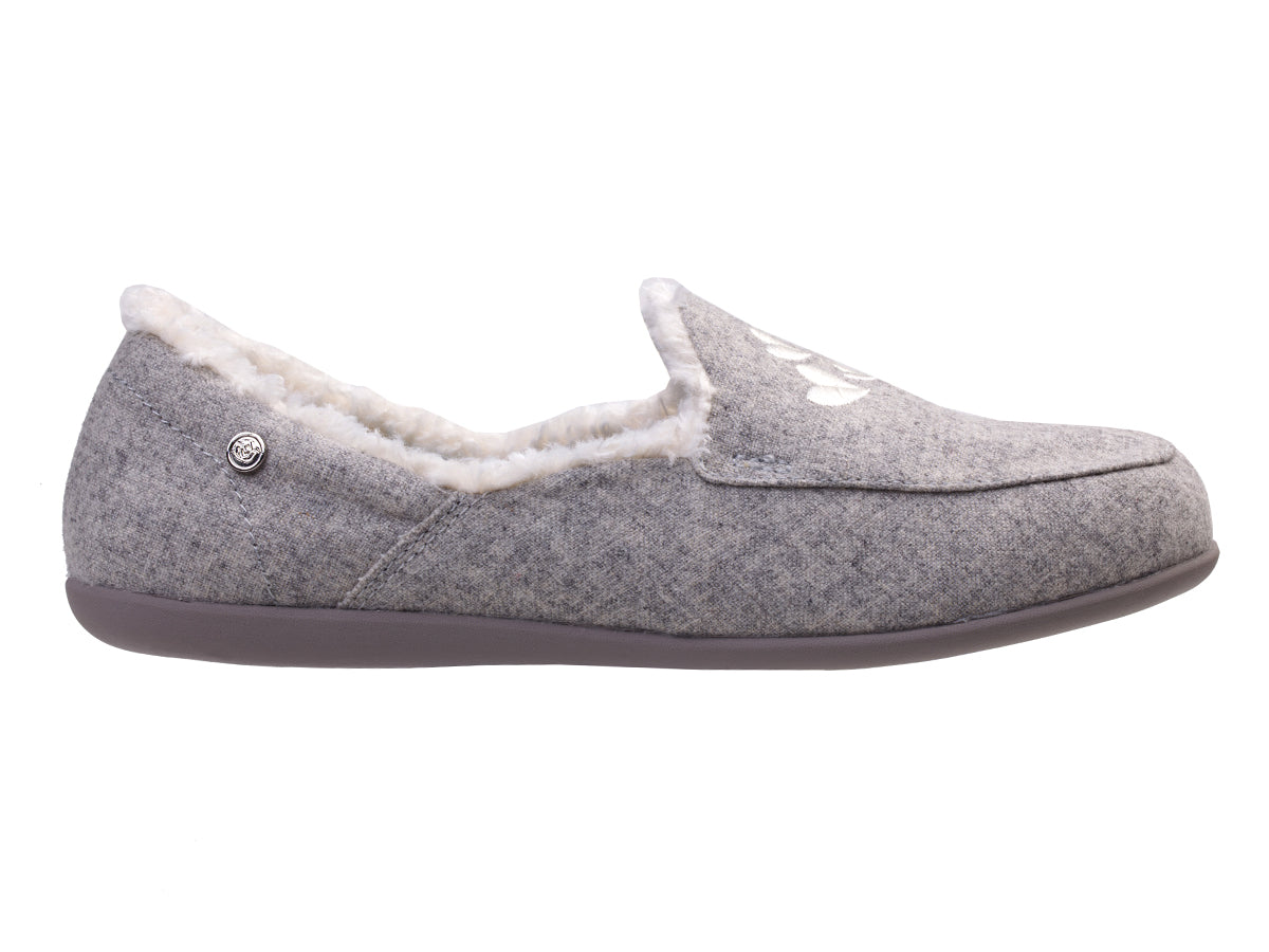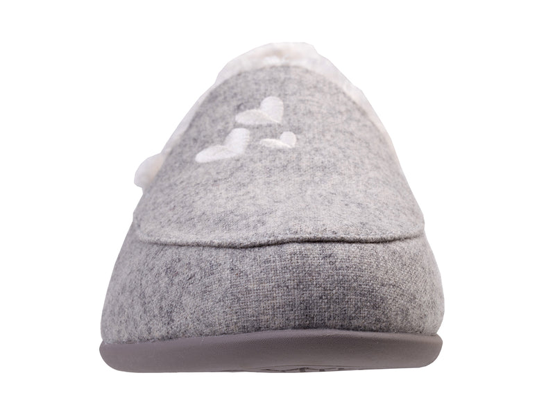 Walk amongst the clouds and rest your tired feet with our most errand-friendly outsole and our Full Contact Comfort® Footbed, experience all-day comfort and support with lightweight heathered textile beautifully embroidered with hearts or stars, faux fur lining, and stripe brushed jersey lined footbed.
