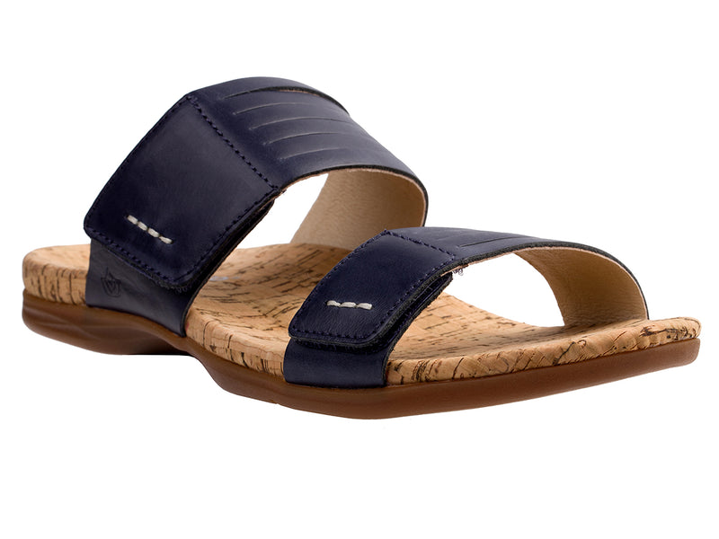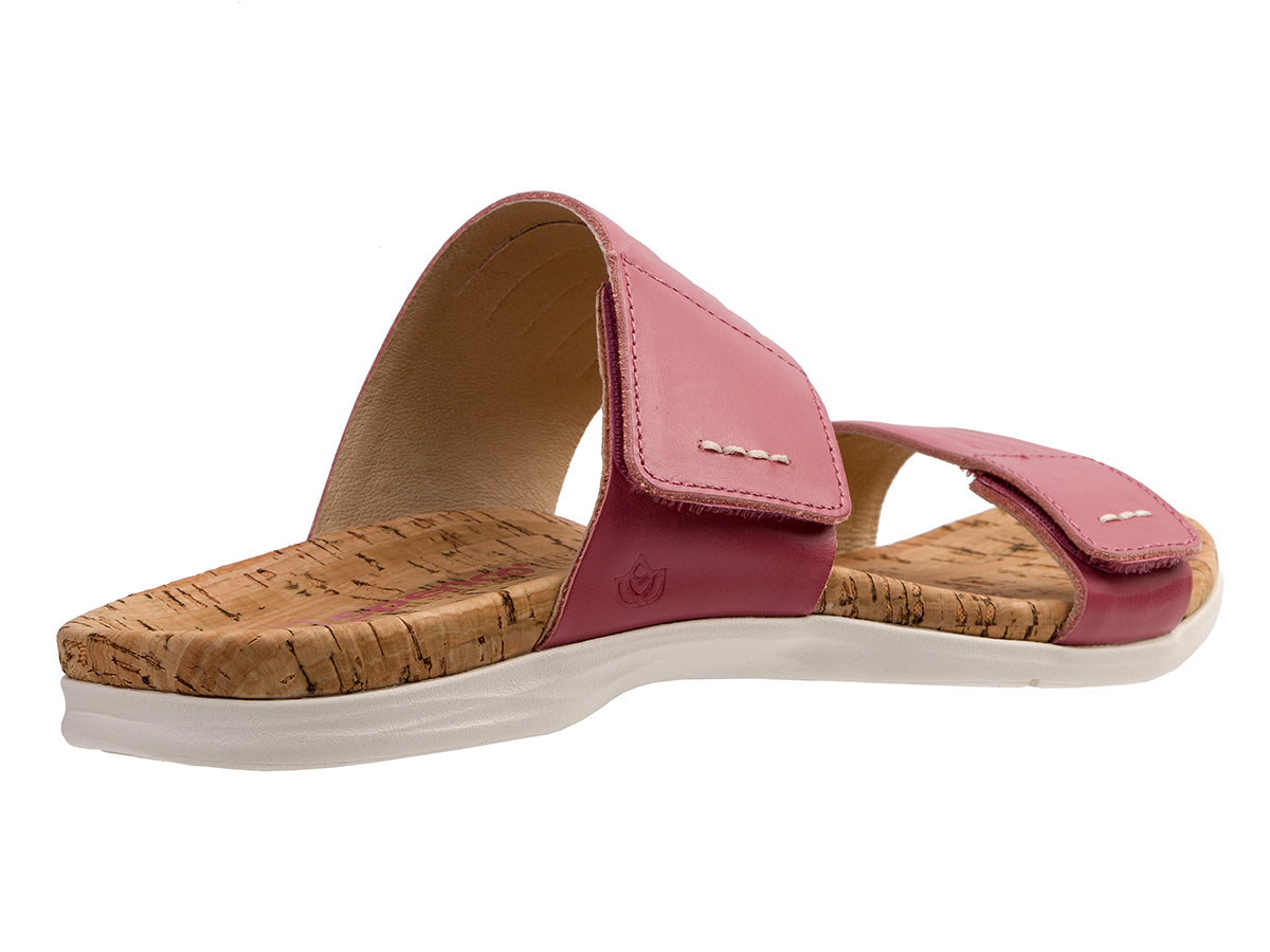 Simply stunning the Layla fully adjustable slide with hook and loop closure is bonded together with genuine full-grain leather upper and linings. Delicate scoring provides flexibility and interest to the leather. Our Full Contact Comfort® footbed provides you with unmatched support and comfort.