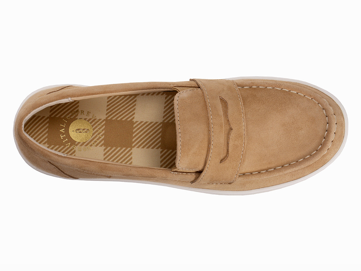- Fashion-Forward Suede – Soft, luxurious suede paired with a classic penny loafer accent for timeless style.