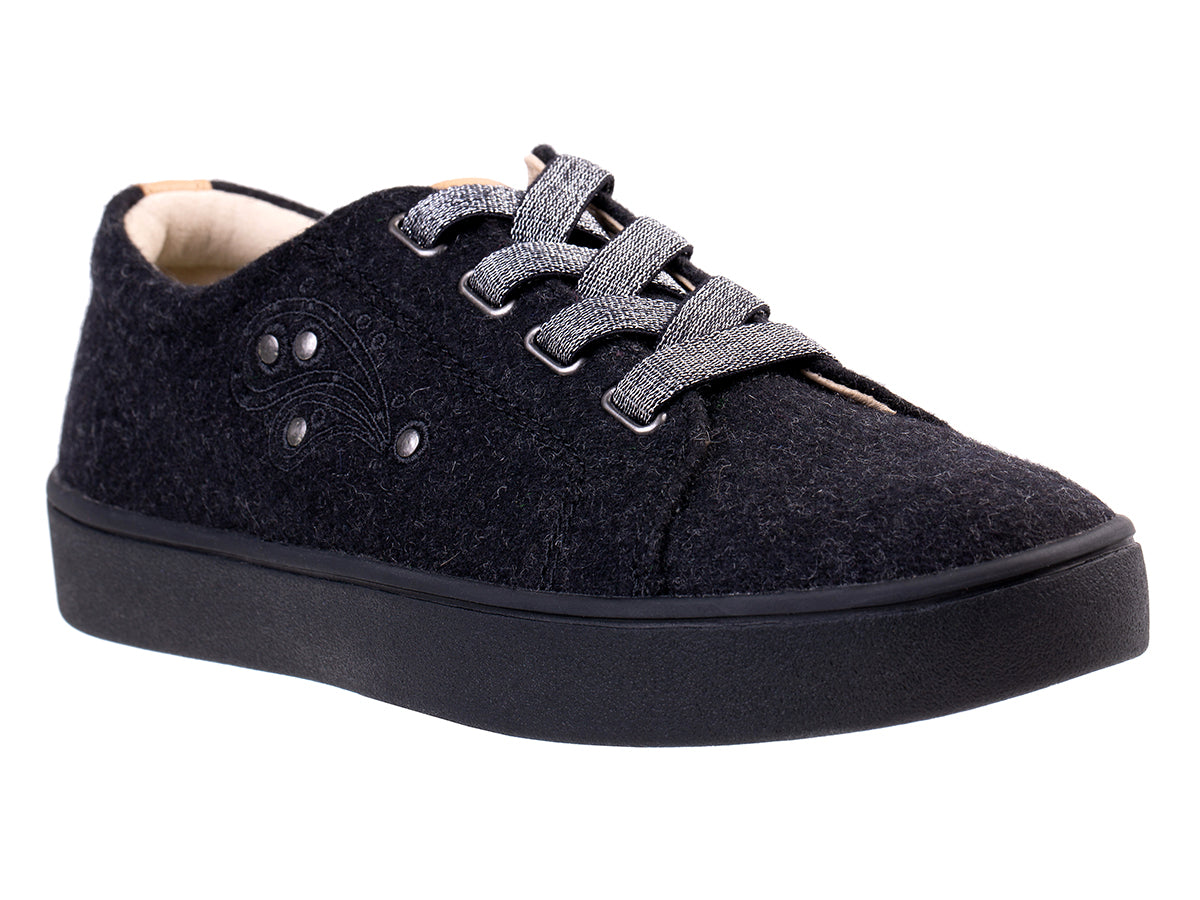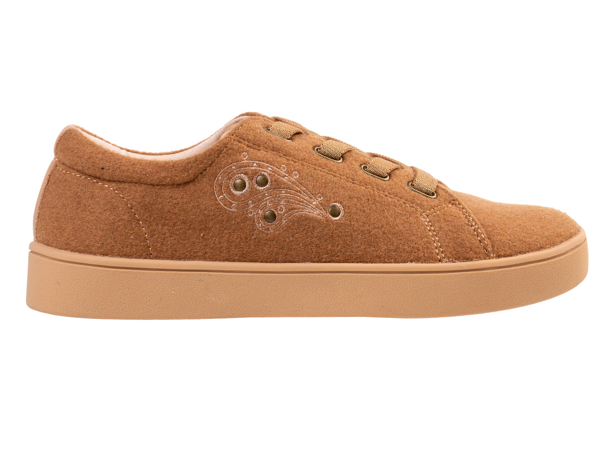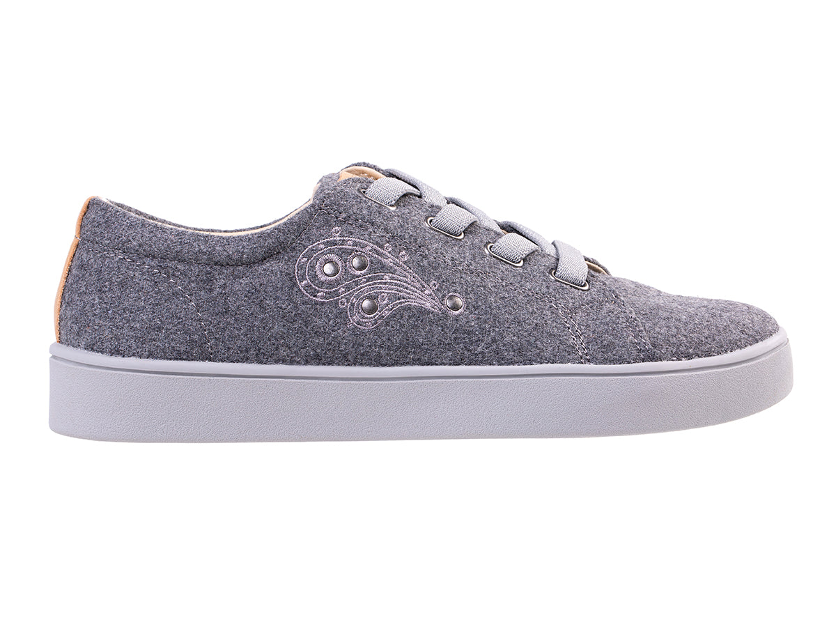 Experience the perfect fusion of comfort, warmth, and style with the Malibu Sparkle sneaker. This easy-to-wear design features a touch of sparkle, elastic stretch laces, and an embroidered paisley pattern, all beautifully trimmed with genuine full-grain leather. As with all Revitalign® Footwear, the Full Contact Comfort® Footbed delivers exceptional orthotic support for all-day comfort.