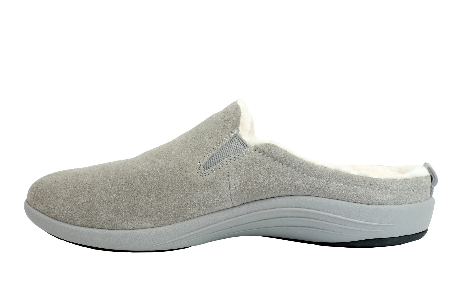 Slip into our most casual and comfortable, on-the-go slipper featuring genuine water-resistant suede with sherpa plush lining throughout. From bedside to the BBQ and everywhere in-between, you’ll forget you are wearing orthotic quality slippers with doctor-designed technology featuring Revitalign® and the Full Contact Comfort® removable footbed, get ready for an unmatched level of orthotic support and comfort.