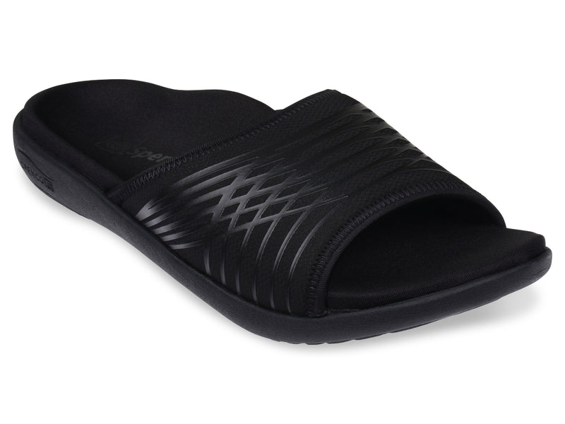 This re-designed athletic slide uses a Structured Memory Foam™ footbed construction helping to create a soft yet supportive underfoot cushioning platform perfect for post-workout foot recovery. The soft stretchable composite material cross strap is enhanced with a bonded TPU support structure adding subtle rigidity where it’s needed.