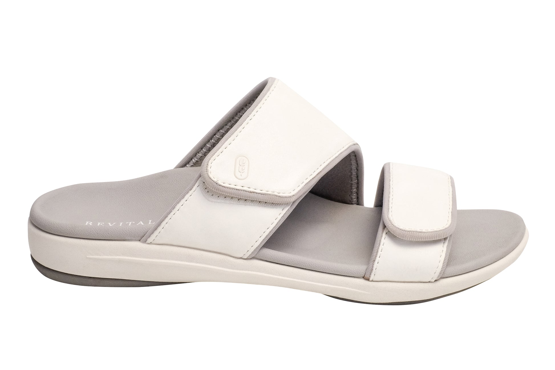Comfort doesn’t mean you compromise style, the Kholo Nuevo slide with a patent leather-like finish and beach-friendly quick-dry textile linings are available in both medium and wide from sizes 6-12. Featuring Revitalign® and the Full Contact Comfort® footbed provides an unmatched orthotic support level.