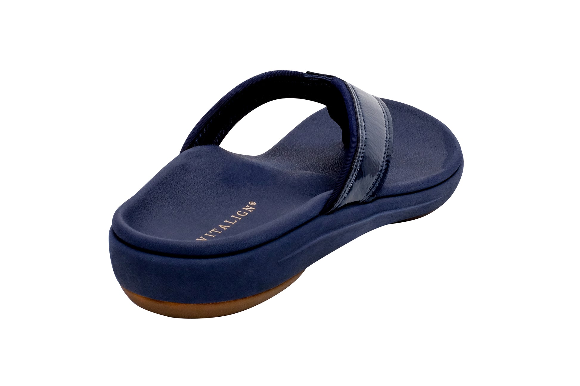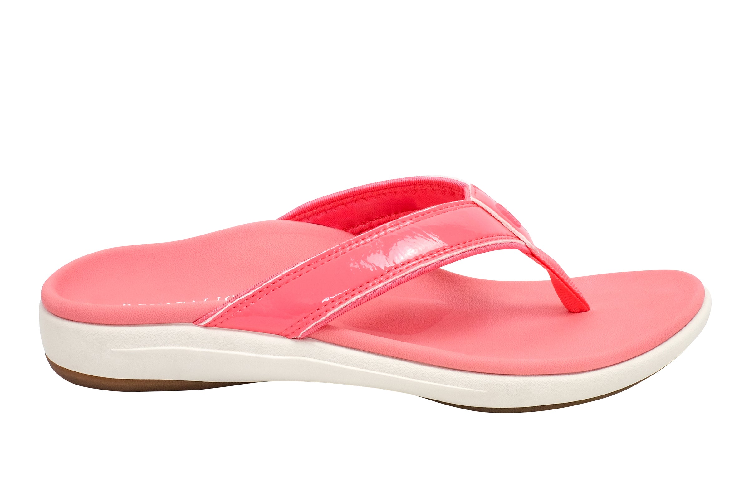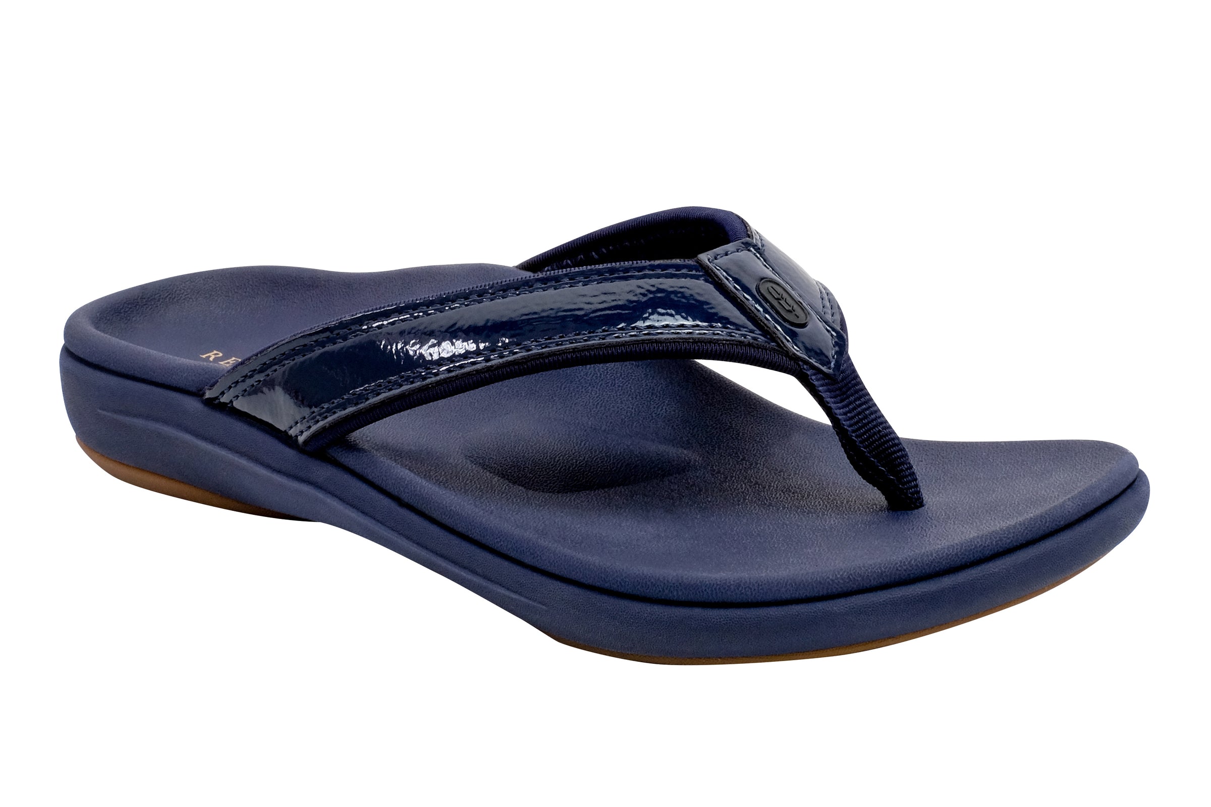 Experience the perfect blend of style and comfort with the Yumi Nuevo Flip, a sandal that proves you don't have to compromise on either. This flip-flop features a chic patent leather-like finish, beach-friendly quick-dry textile linings, and is available in both medium and wide widths (sizes 6-12). Step into unparalleled orthotic support with the Revitalign® Full Contact Comfort® footbed.