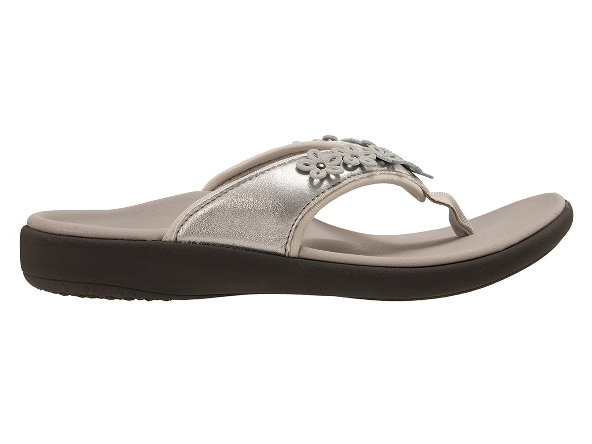 Let the Yumi Hamptons set the tone for your next vacation. Our most iconic and beloved sandal is beautifully trimmed with gorgeous dimensional flower petals, riveted with a metal centerpiece. This adds a touch of femininity and craftsmanship to a style already loaded with orthotic support and comfort. Step out and step onto exceptional comfort and support from Revitalign®, featuring our Full Contact Comfort® footbed.