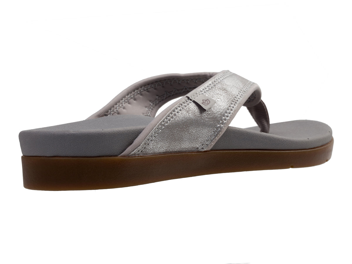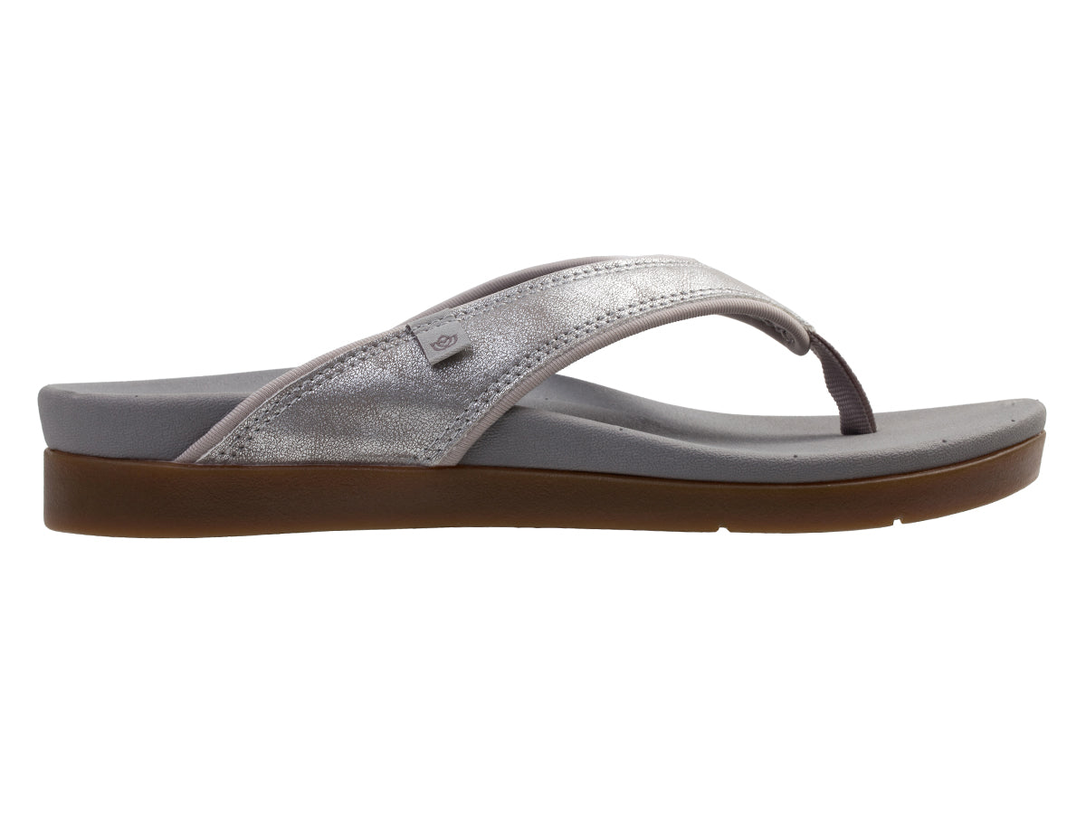 East or west, a shoreline never disappoints and with neither function nor fashion taking the back seat, the Shoreline Metallic is no exception. Combining textured beach-friendly synthetic leather, a webbing toe-post, quick-dry linings, and an unlined footbed, make a statement this season by adding effortless flare to your attire. Our Full Contact Comfort® footbed provides an unmatched level of comfort and support.