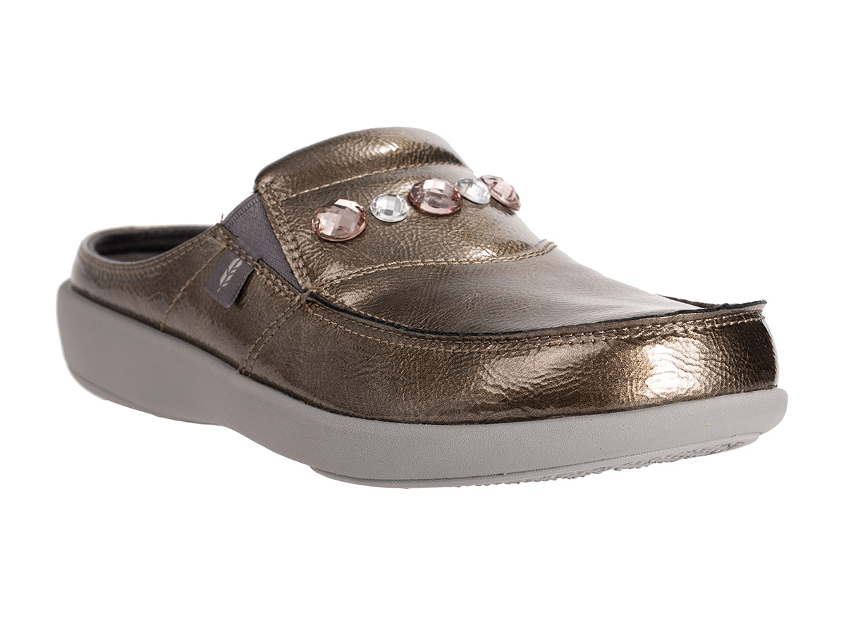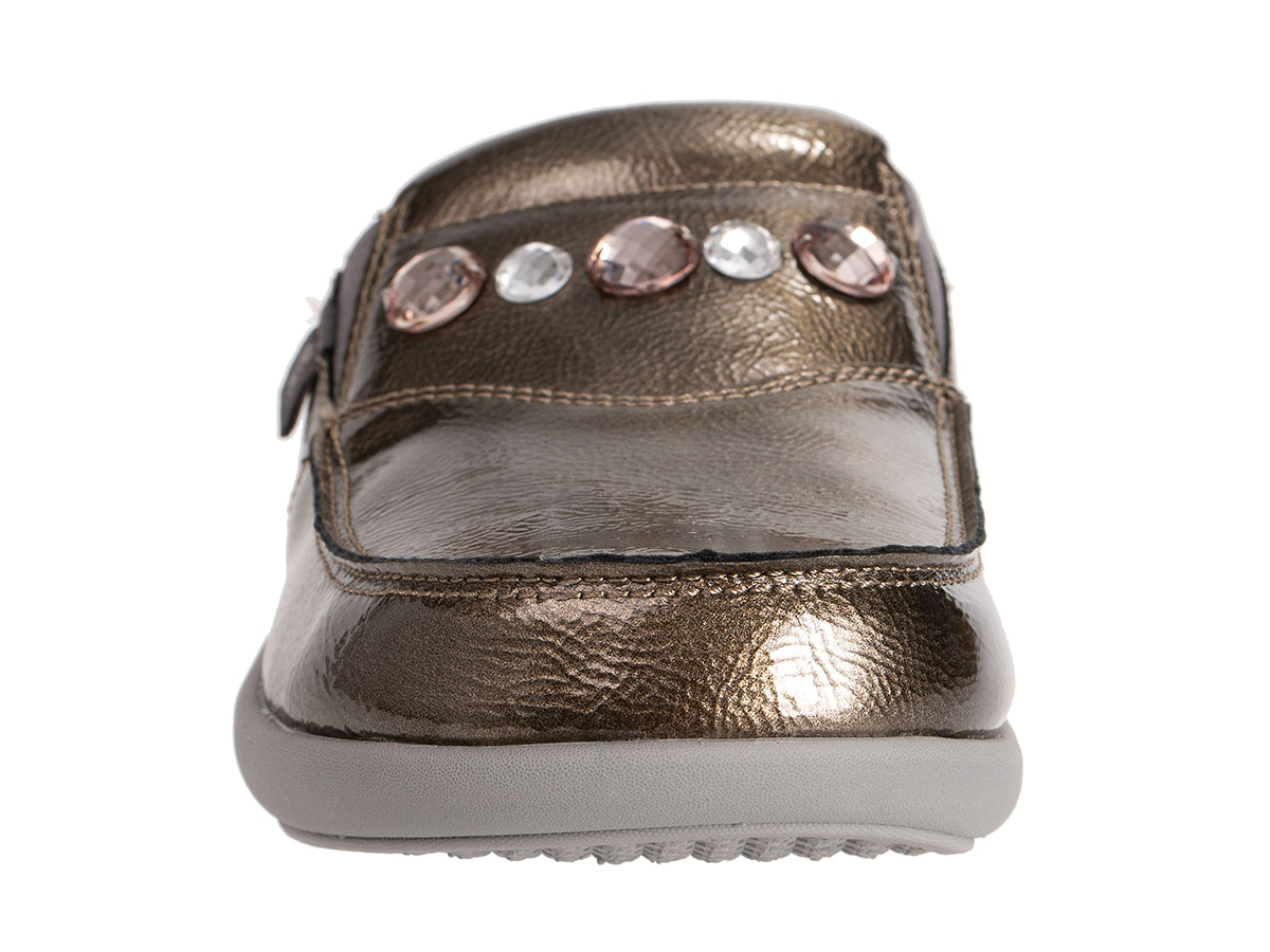 A glamorous touch to upgrade your everyday style with the Siesta Dazzle. Combining rich crinkle patent tones alongside bedazzled low-profile gems, staying on-trend this season just got a little easier and a whole lot more comfortable with Revitalign® Footwear and our Full Contact Comfort® Footbed, delivering an unmatched level of orthotic support for years to come.