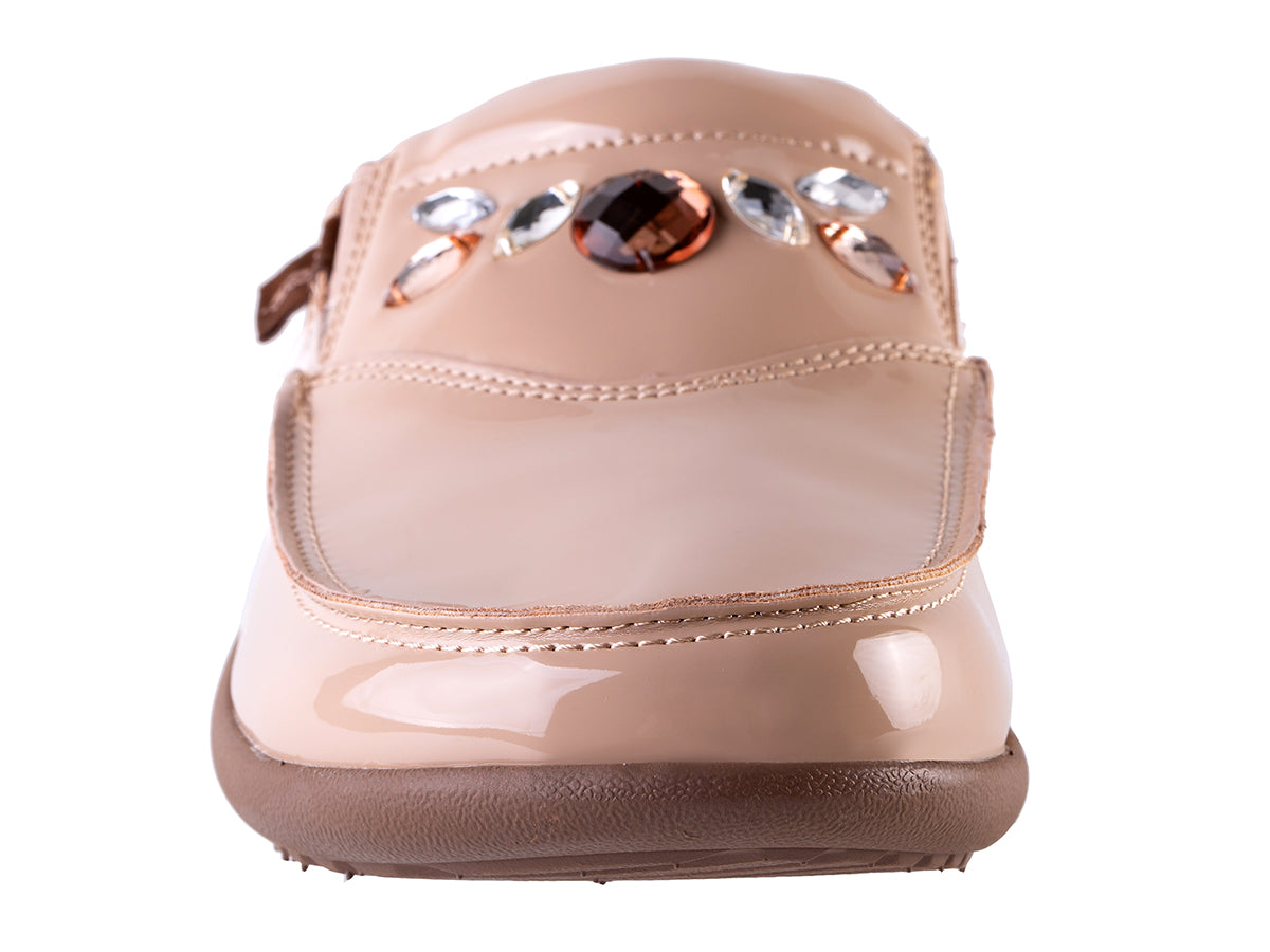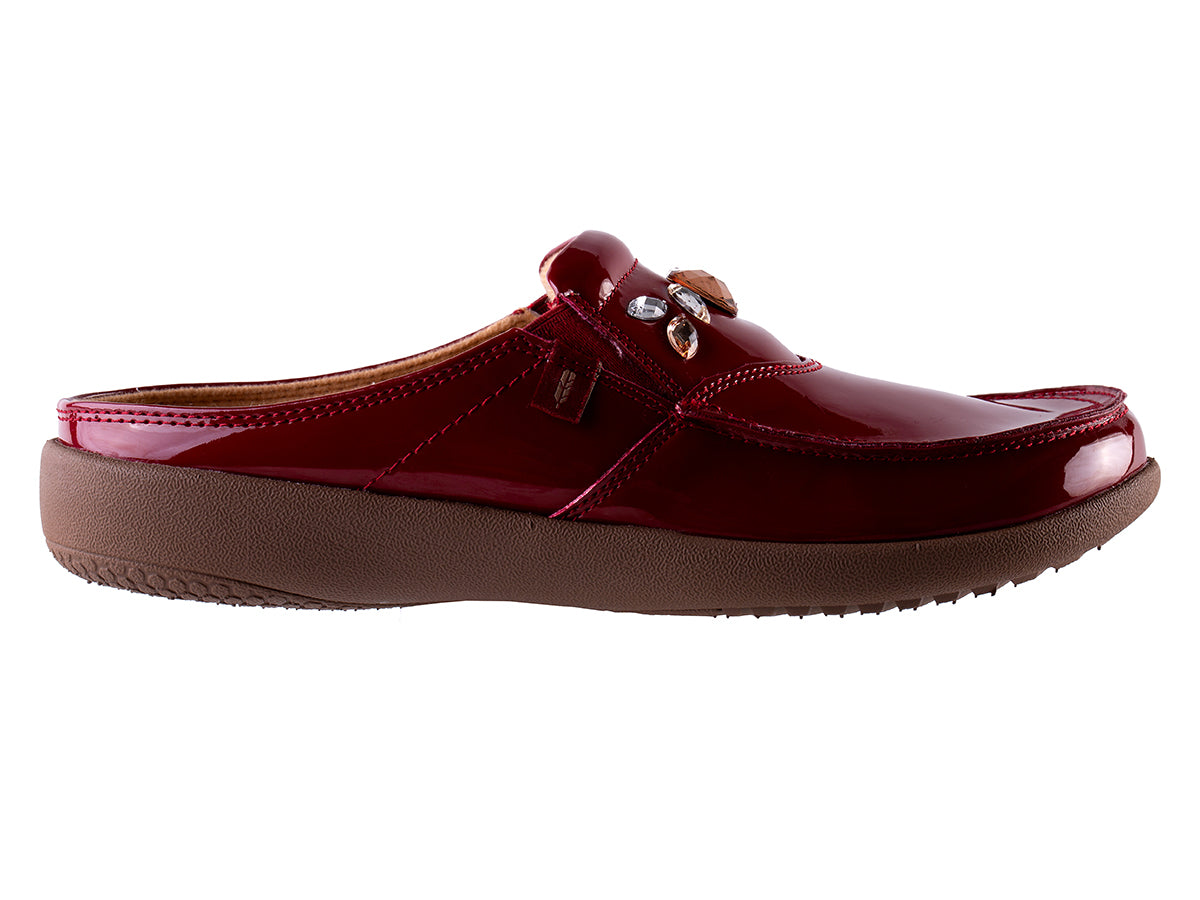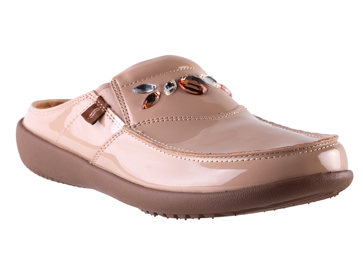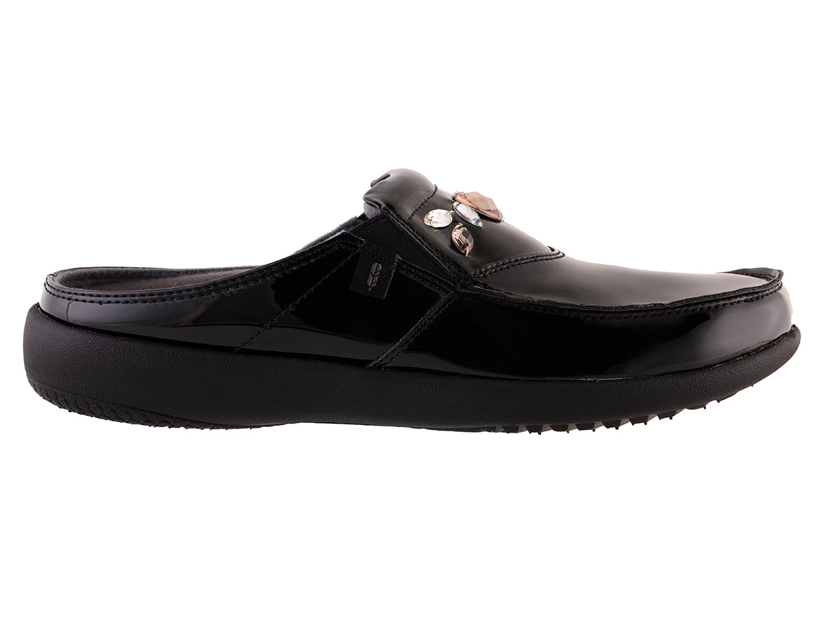 Imagine a shoe that effortlessly transforms your everyday look into something truly special. The Siesta Snazzy is designed to capture attention, blending the sleek sheen of rich patent leather with the captivating sparkle of bedazzled gems. It's not just about looking good; it's about feeling confident and comfortable, knowing you're stepping out in a shoe that's both stylish and supportive.