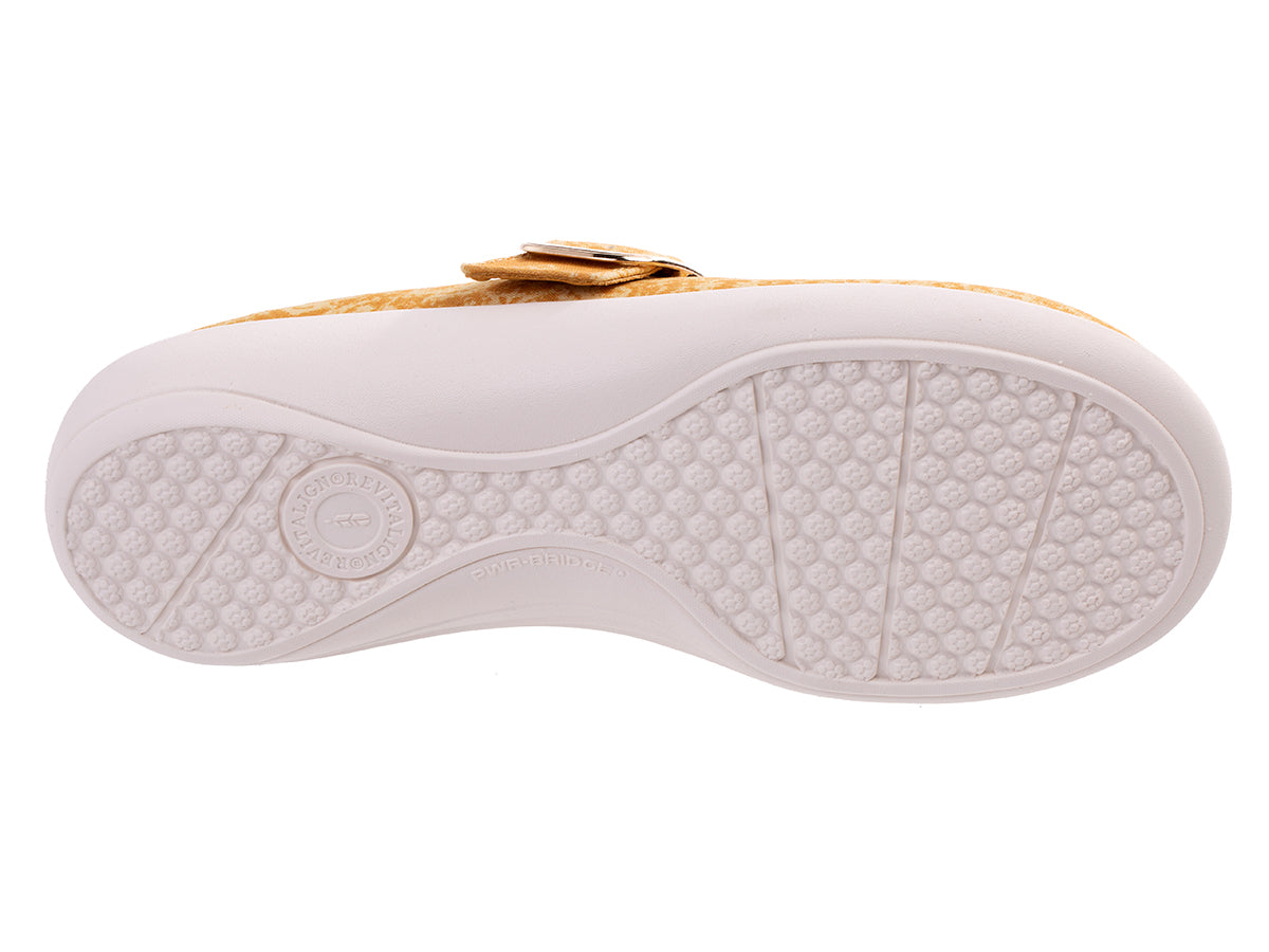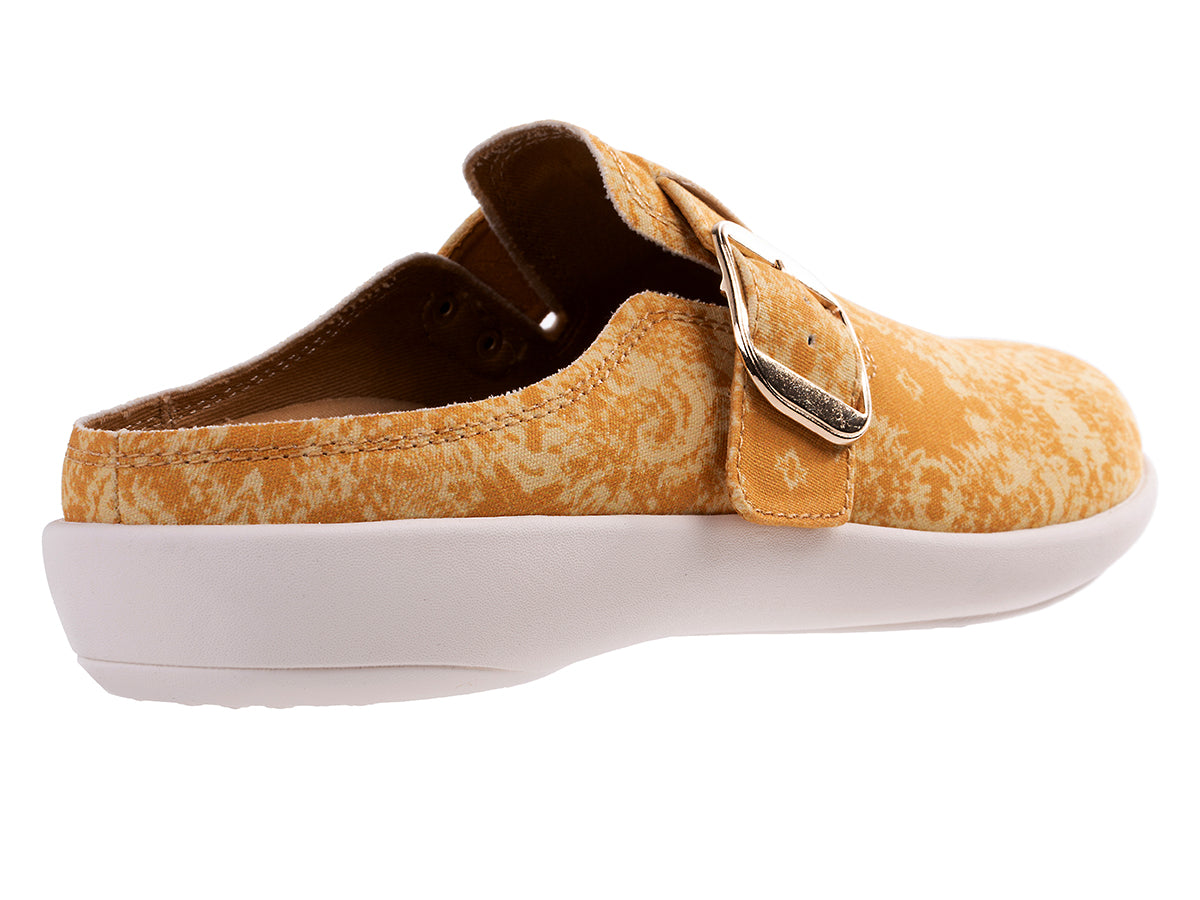 Step into a blend of unique style and exceptional comfort with the Solaire Damask. This lightweight canvas shoe features an elegant damask pattern, offering a sophisticated twist on casual wear. The functional buckle ensures all-day adjustability, providing a perfect fit for any occasion.