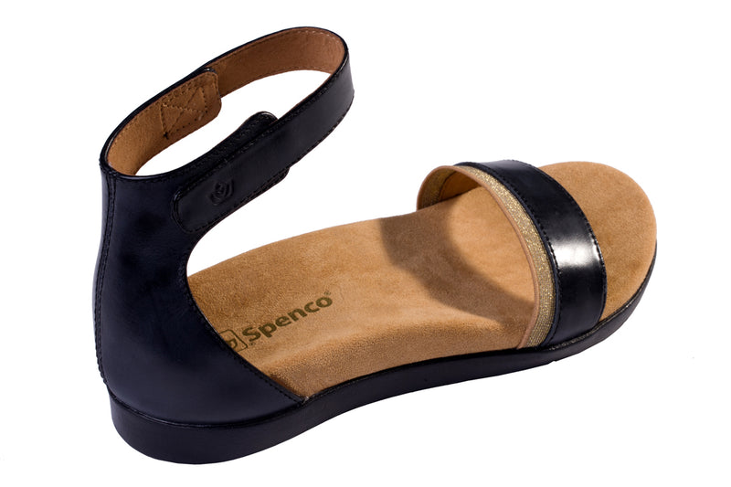 These shoes are very comfortable for someone like me with feet issues and overweight. Podiatrist had these and I needed a last minute shoe for an important event. Practice wearing before the big event. So these shoes apparently run larger than I expected. I normally wear a 10 1/2 D. The shoes I was fitted at office are a 8 1/2 D. Haven't wore something that small since Jr high maybe, 30+ years ago. I love the velcro strap instead of buckle. Easy on and off. Arch support. Like a soft suede bottom inside. Rubber sole on bottom of shoe. The color of gold shimmer is accented across the top of foot. Made in China. The color is very pretty. I am not a open toe person but these will do since many ma-pop shoe stores have closed as did Hershey's in our state. So unfair. Folks like me need to shop in store and not online. Jasmine is the color I have. I will submit or update my review if need be after wearing more often. I wish there were more reviews than what I have seen on this website. I would have never guessed to order 2x's smaller in size. I might could get away with a 9 but then the back heel area may be too big. Please state this or any other uncommon issues in the descriptions if possible. Would make shopping easier for all the unknowns. Purchased another shoe, (sandal) to try around the house. Will review on that soon. Thank you for the comfortable designs we need and yes, would buy more or try more. 4 star only because of the difference in size issues.
