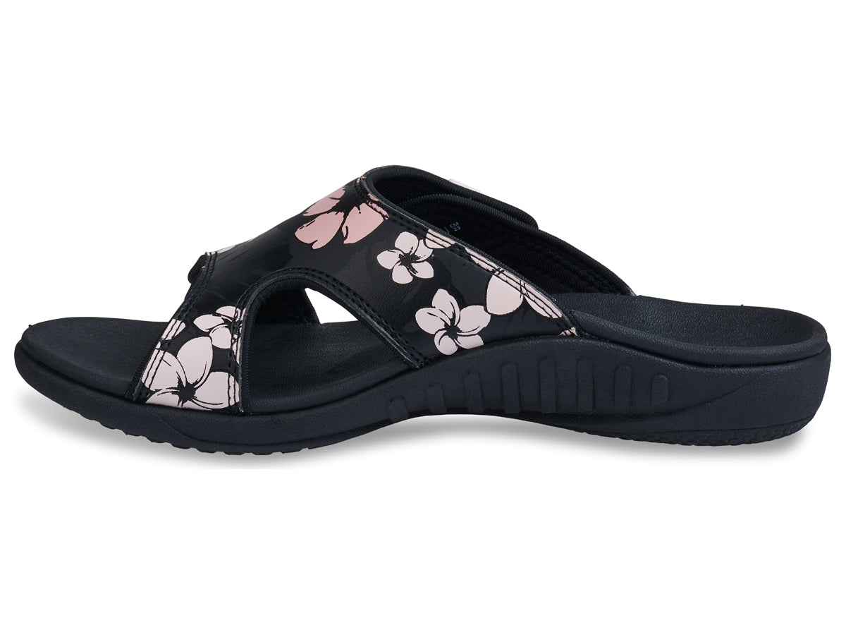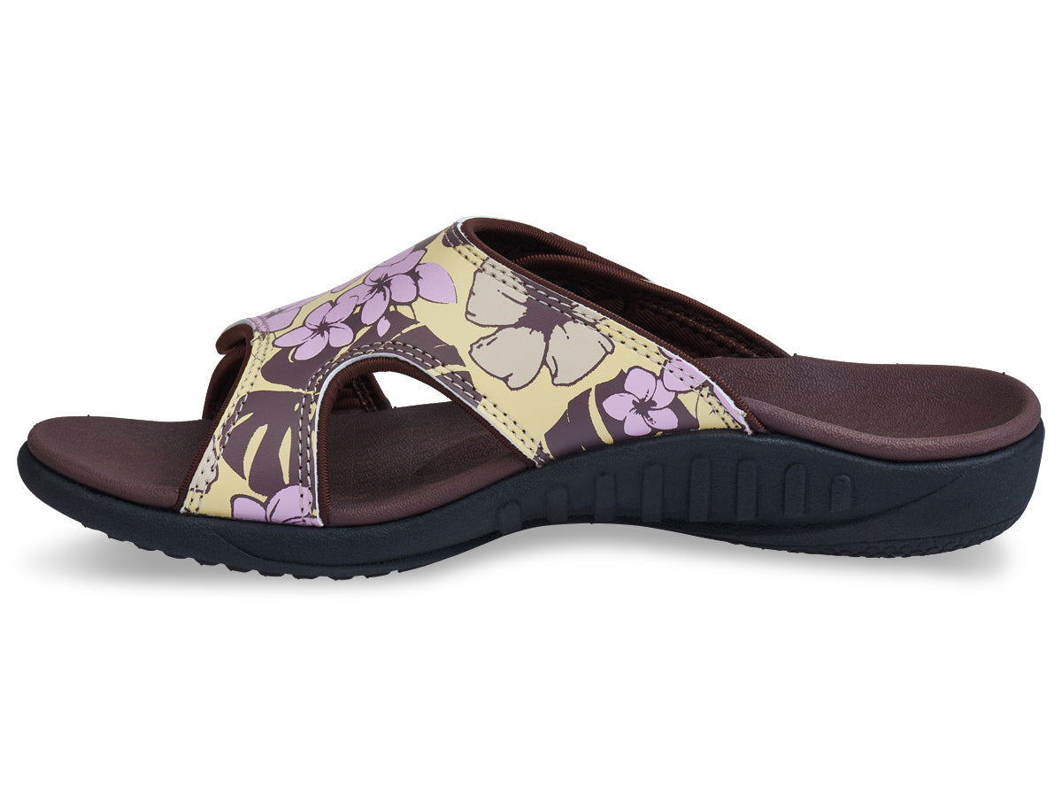 Beautiful step after step. This seasons Luau print and adjustable upper will become your go to favorite. Inspired from the tropics, the dreamy color swill keep you thinking of your next vacation. The contoured footbed and metatarsal support provide an unmatched level of comfort and support.