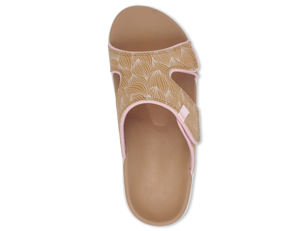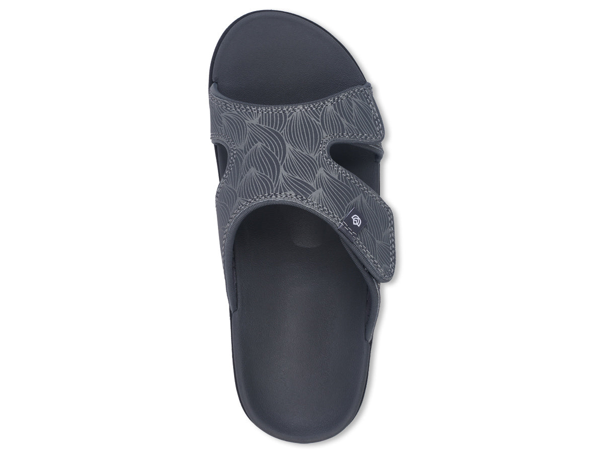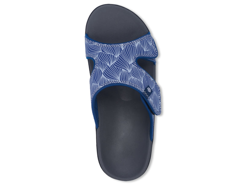 Happiness comes in the WAVE Slide. This adjustable slide takes the Kholo style to the next level with a hook and loop adjustment strap over the instep of your foot. The wave pattern graphic helps to get those summer vibes flowing and the increased adjustability is second to none. A contoured footbed and metatarsal support provide an unmatched level of comfort and support.
