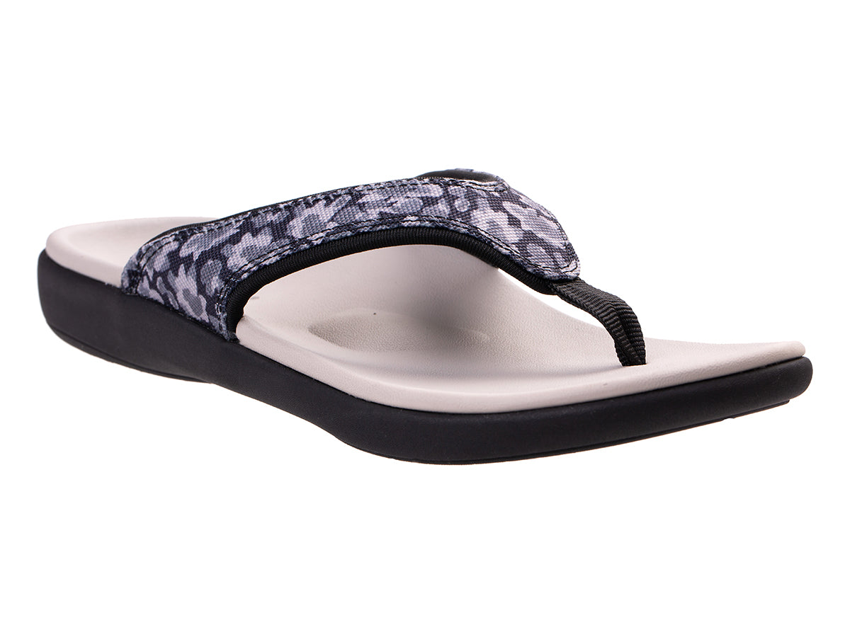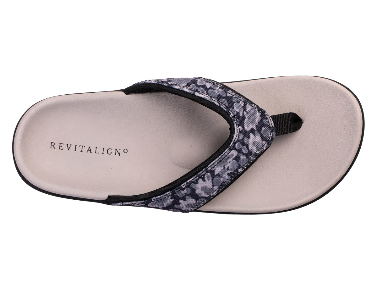 Welcome the sunny days of spring with the Yumi Mod Floral sandal, a modern twist on our classic favorite. This sandal features a striking monochromatic floral printed canvas upper, a soft webbing toe post, and quick-dry linings, all while delivering the unparalleled comfort and support you've come to expect from Revitalign®. Step into spring with confidence and ease.